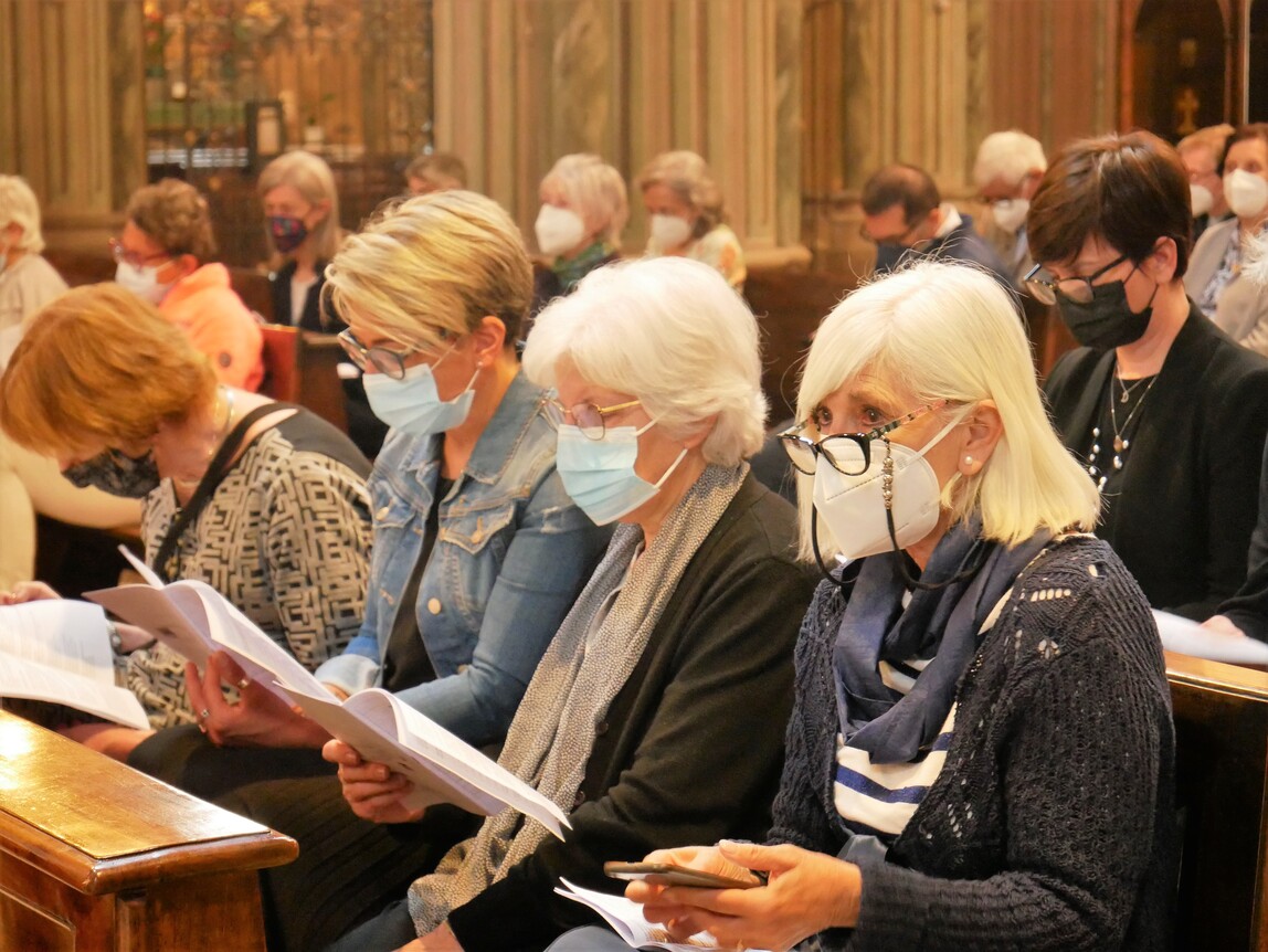 Particolarmente coinvolgente, all’offertorio, il canto in lingua swahili, “Beba mikononi”, che in breve si rivela richiamo irresistibile alla partecipazione per tanti dei presenti ed, in particolare, per alcune Consorelle appartenenti ad altre Congregazioni ed originarie della Tanzania, che hanno partecipato a questo momento di alta e gioiosa spiritualità.