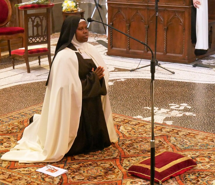 Al termine dell’omelia, il Vescovo domanda a Sr.Agata se è disposta a consacrarsi a Dio, vivendo la carità del Vangelo, seguendo la Regola e le Costituzioni dell’Ordine Carmelitano.