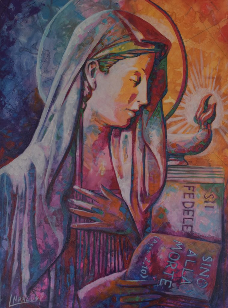 Il pittore di fama internazionale Luciano Mancuso ha fatto dono al Comando Provinciale di Biella di cinque opere pittoriche quattro appositamente realizzate per celebrare le gesta dei Carabinieri nel territorio più la Patrona dell’Arma dei Carabinieri la Virgo Fidelis.