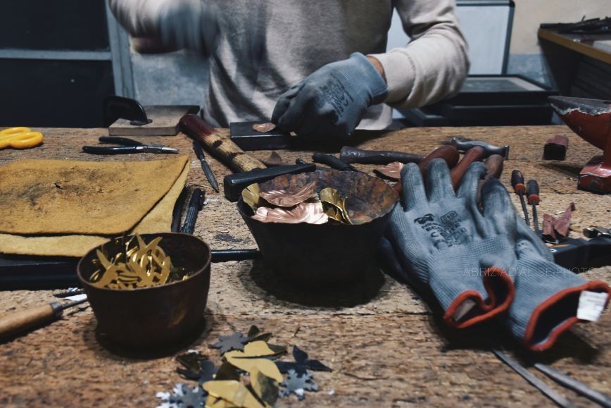 Il laboratorio accoglie migranti che lavorano metalli poveri al fine di produrre oggetti di design.