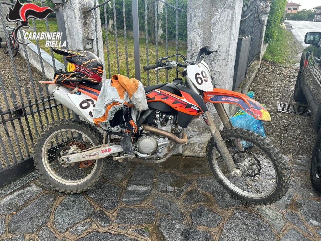 Richiesto ed ottenuto un decreto di perquisizione dalla Procura di Biella, i Carabinieri hanno trovato e sequestravano nella sua abitazione la moto ed il casco indossato al momento della fuga.
