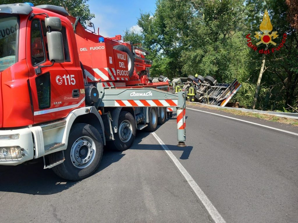 Arrivati in posto la squadra i Vigili del Fuoco hanno soccorso l’autista ed estinto il principio di incendio che aveva intaccato la motrice del camion, a seguito del ribaltamento.