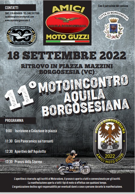 Aquila Borgosesiana accende i motori dopo due anni di riposo ed organizza l’11° Motoincontro Aquila Borgosesiana.