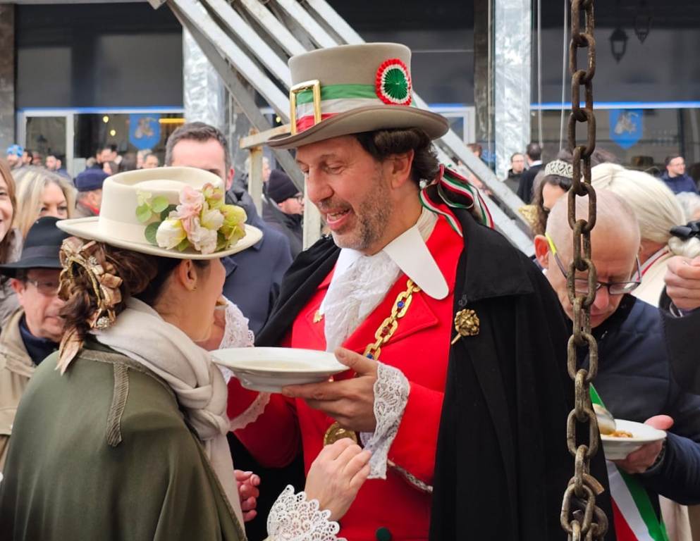 Peru Magunella, già nei panni di buon sovrano, ha lanciato la sua prima richiesta: una piazza borgosesiana più vivace e dinamica. Dopo il discorso, tutti si sono deliziati con un assaggio della prelibata busecca, per poi proseguire la festa con il pranzo organizzato dalla Pro loco.