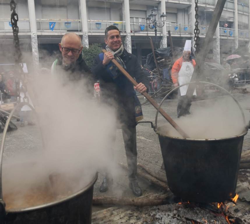 L’evento è stato inaugurato all’alba dai cuochi che, con grande dedizione, hanno dato il via alla preparazione della tradizionale busecca, seguiti da una leggera pioggia che non ha influito sull’atmosfera festosa.