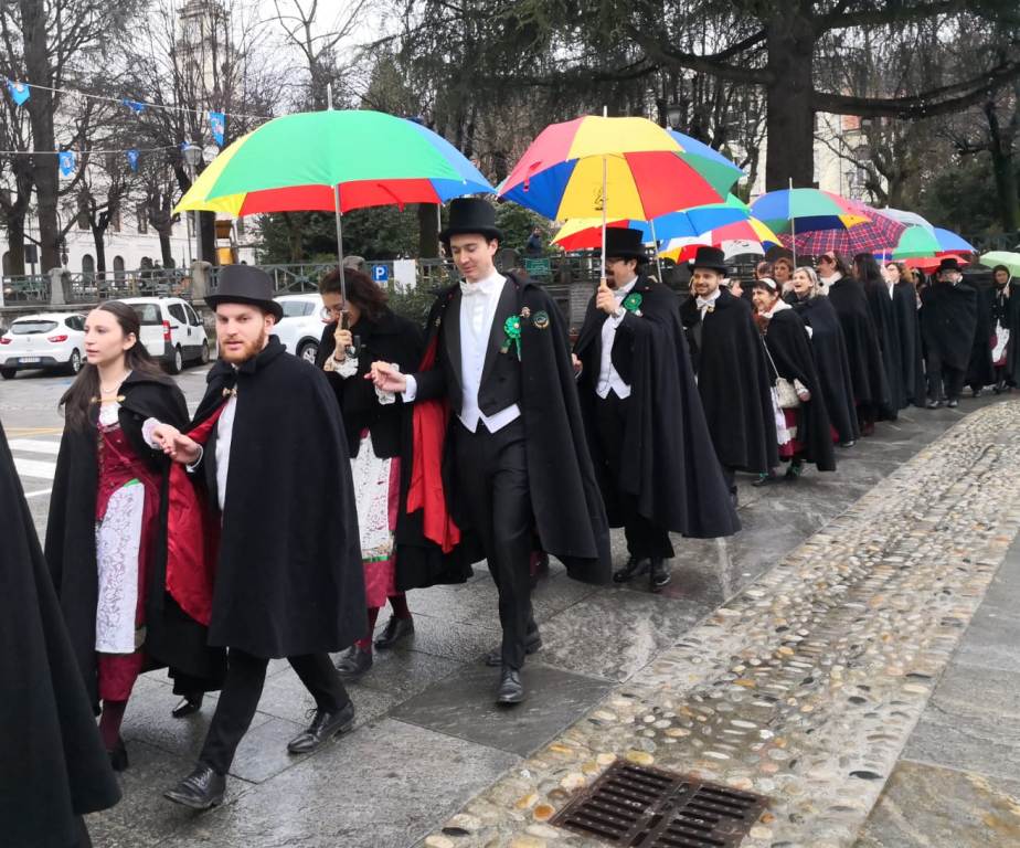 La cerimonia è cominciata con l’ingresso della Gin e del suo seguito di damigelle, per poi culminare con l’apparizione trionfante del Peru, giunto direttamente dal Rione Agnona, dove quest’anno il Comitato Carnevale celebra cinquant’anni di attività. La sua entrata è avvenuta a bordo di un’imbarcazione, nel caso il ponte fosse stato chiuso.