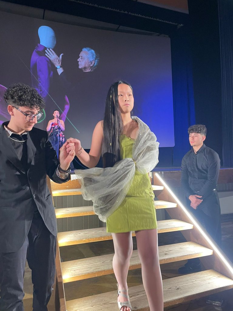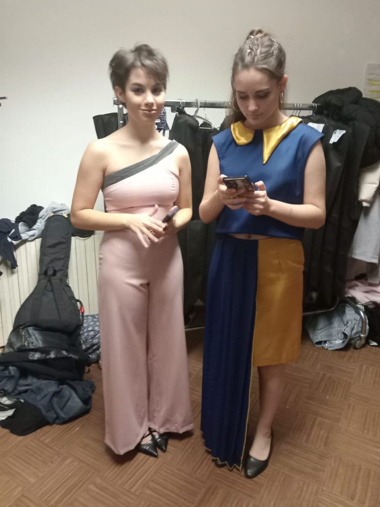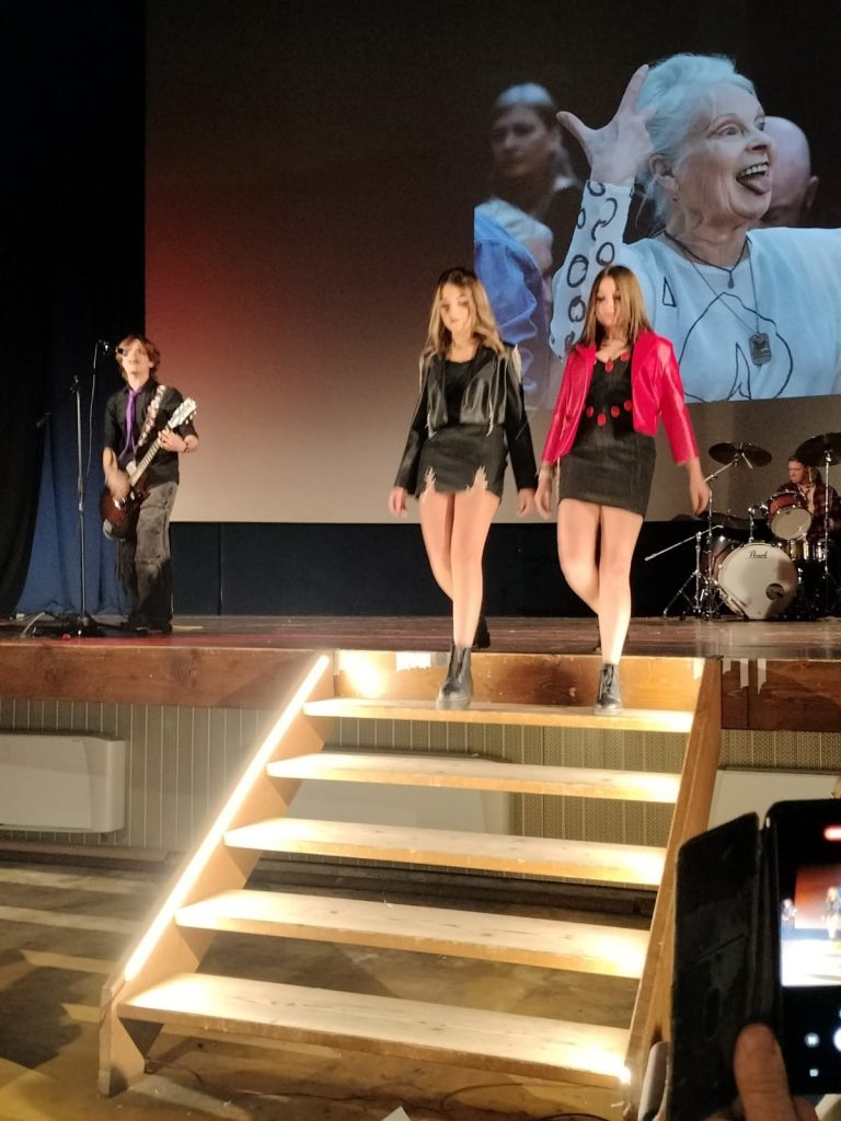 Ad arricchire la sfilata l’intervento musicale della band Annameds nell’atto dedicato al punk e i brani della cantante Sophia Calestani, studentessa del quarto anno del corso Moda, che ha eseguito Mia Martini e Mina.
