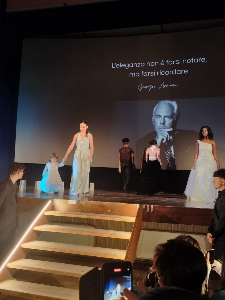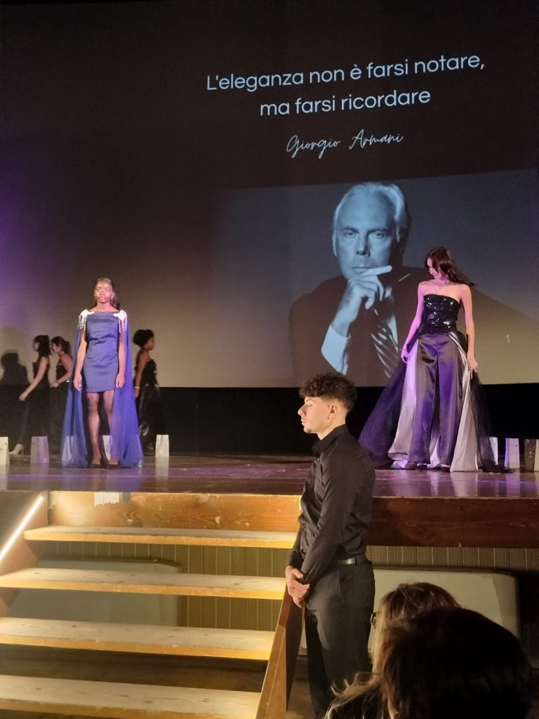 Un ultimo cenno agli studenti, primi fra tutti quelli del corso Moda che come detto non si sono risparmiati, ma anche ai tanti coinvolti nell’organizzazione: da citare quantomeno i preziosi bodyguard che hanno aiutato modelli e modelle a scendere le scale del palco senza inciampare negli strascichi: Davide De Giuliani, Akram Smouni, Hamza Mirinioui ma anche Gabriele Ricciardi che ha realizzato il video della sfilata.
