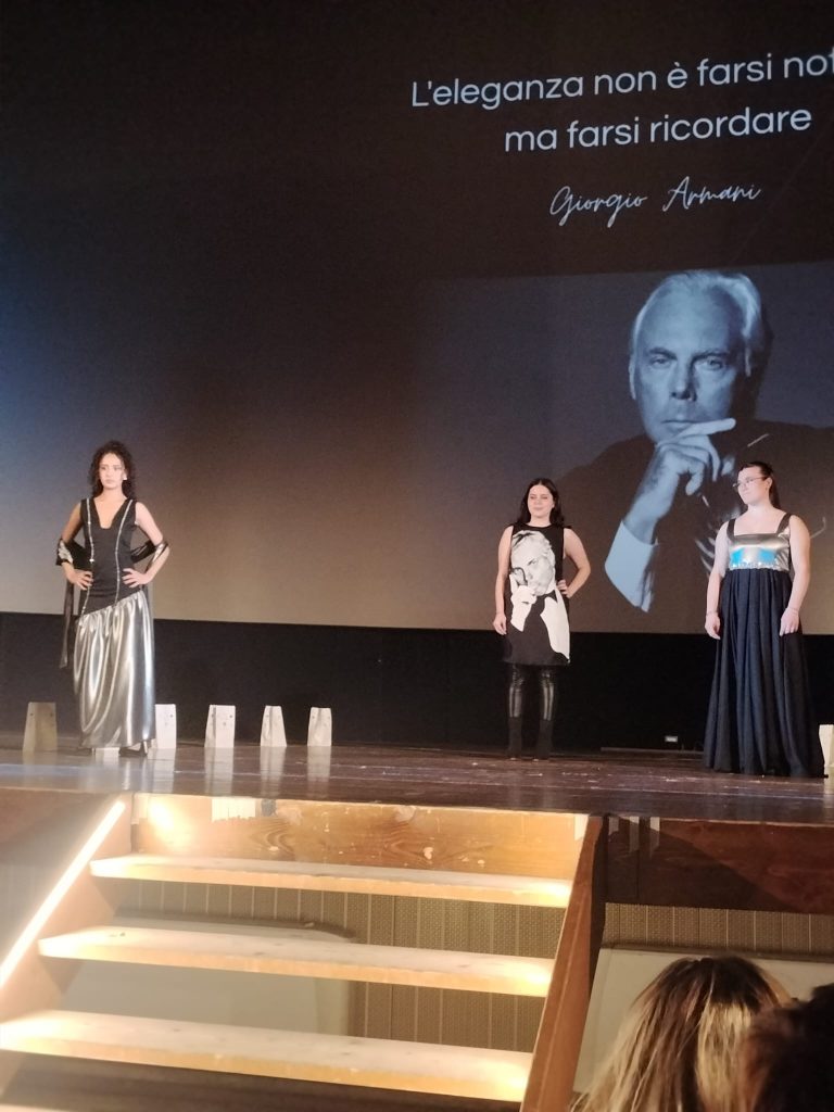 Le creazioni del corso Moda hanno incantato e sorpreso, in un crescendo che ha attraverso i grandi nomi del fashion design del Novecento e sono culminati nell’atto finale ispirato al grande Giorgio Armani recentemente scomparso.