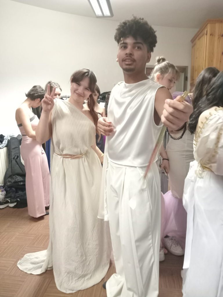Tanti infatti i soggetti che hanno dato il loro contributo: tutti gli indirizzi della scuola professionale, a partire dal corso Legno che ha realizzato le scenografie, parte integrante della performance con gli studenti che salivano sul palco a scena aperta per cambiare i fondali (un grazie qui alla prof.ssa Silvia Remondino di disegno, agli insegnanti di laboratorio, in primis Pietro Valenti e Stefano Giuliani, e alla referente, Carla Ferraris) per arrivare al corso Elettrici che si è occupato dell’illuminazione (grazie ai prof. Maurizio Testa, Francesco D’Alessandro, Emiliano Granelli, Francesco Scarito) e al corso Meccanici che ha creato gli accessori con i prof. Roberto Maccarrone, Giordano Muni e Alessandro Iodice.