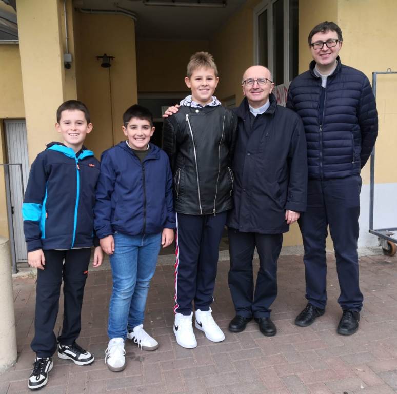 A lui i ragazzi hanno donato la divisa dell’oratorio (<<Per farti sentire da subito uno di noi>>) e un Evangelario.