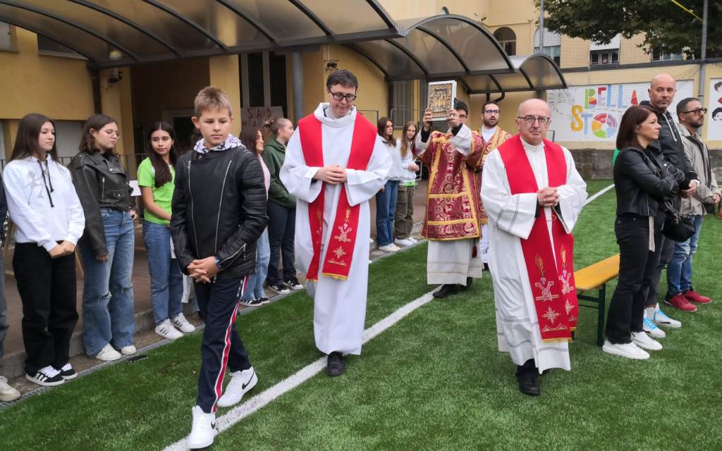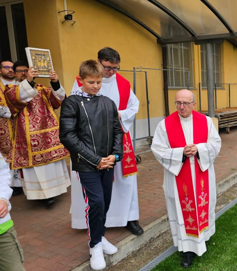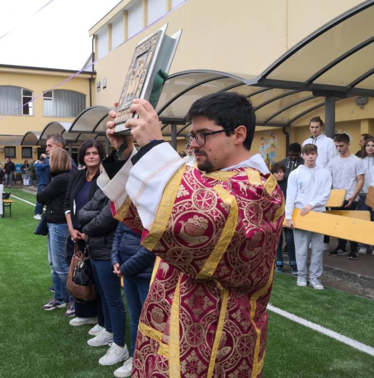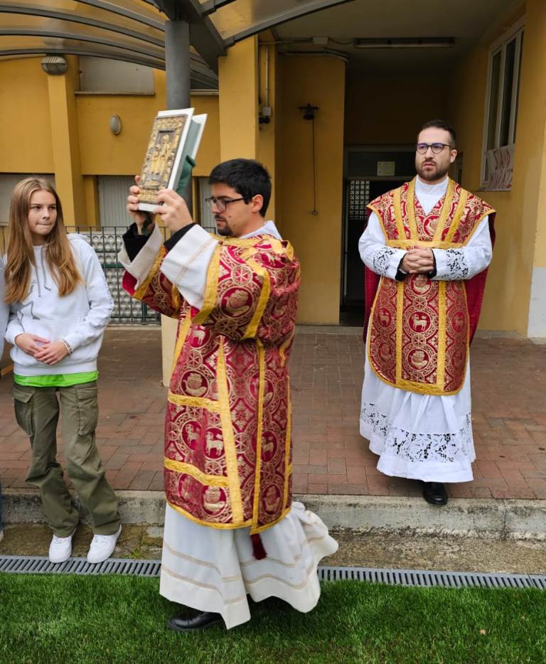 A impartire la benedizione don Michele Balzaretti, originario di Novara, più precisamente della parrocchia di Sant’Antonio.