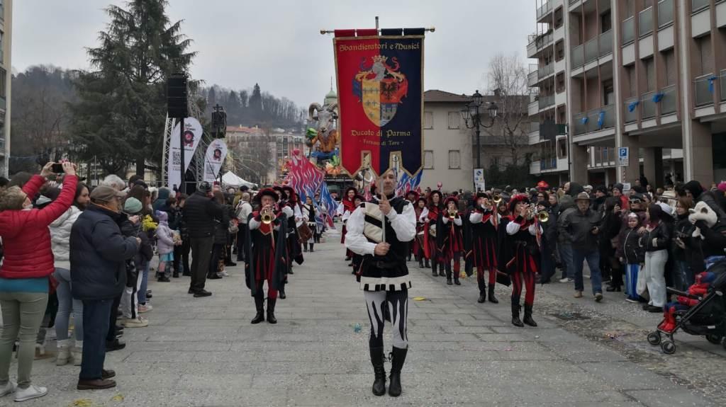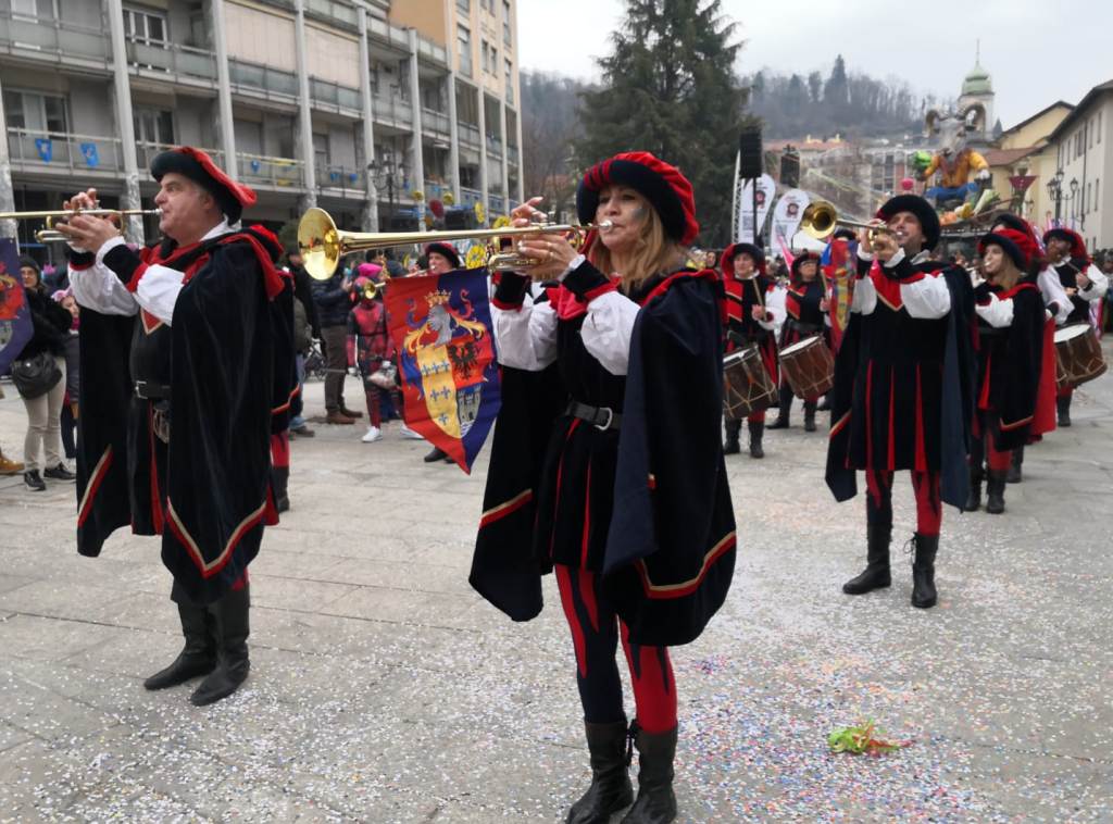 Il pomeriggio è iniziato con la cerimonia di apertura del 139° Carnevale di Borgosesia con il “Gruppo Storico Sbandieratori e Musici “Ducato di Parma” – Fornovo Taro”.