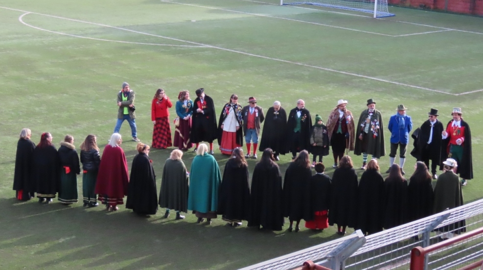 Il clima è festoso con l’ingresso dei giocatori accolti dal cordone delle maschere del Carnevale Borgosesiano.