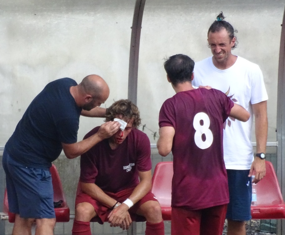 Poco dopo Tobia e Caamano sono costretti a lasciare il terreno di gioco per uno scontro testa contro testa.
