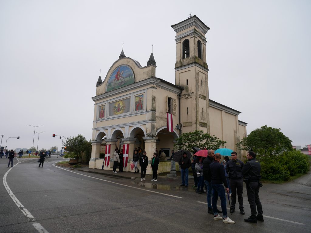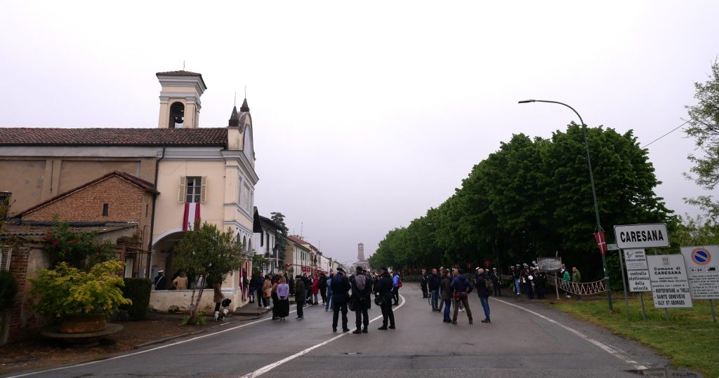 Sciolto per la 788.ma volta il voto a San Giorgio, perpetuata la Tradizione anche quest’anno; Caresana non si è fatta intimorire dalla pioggia che, peraltro, ha dato tregua per qualche minuto proprio attorno alle 12 di oggi, 28 aprile, quando la carriera dei quadrupedi si è iniziata sulla pista rivestita in sabbia, lungo la Via Roma, che conduce alla chiesetta dedicata al Santo.