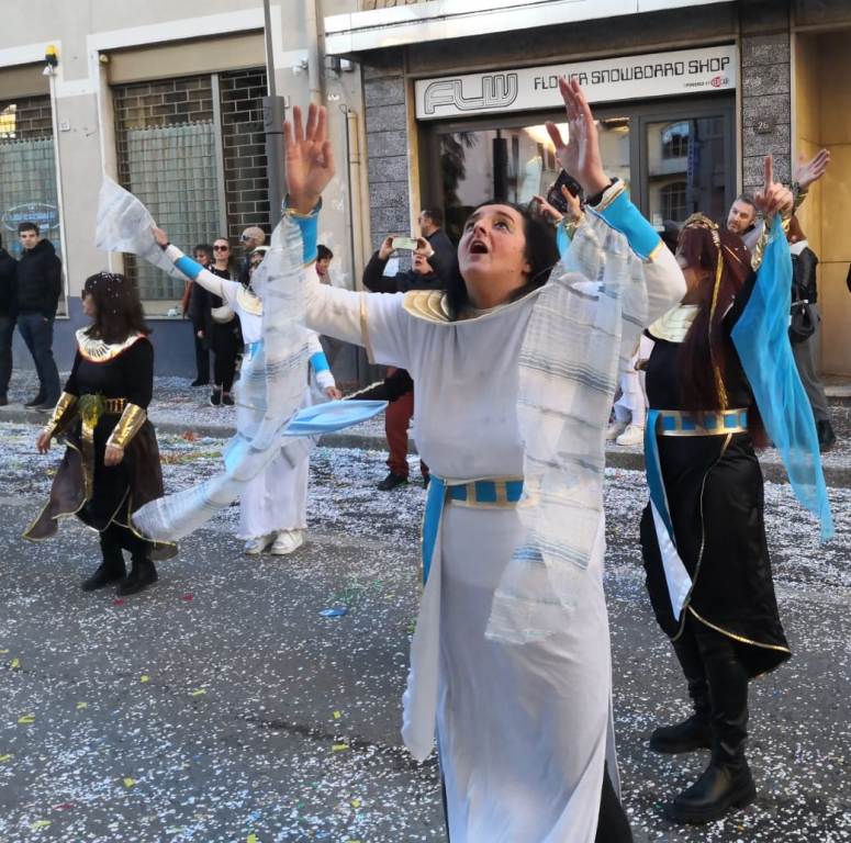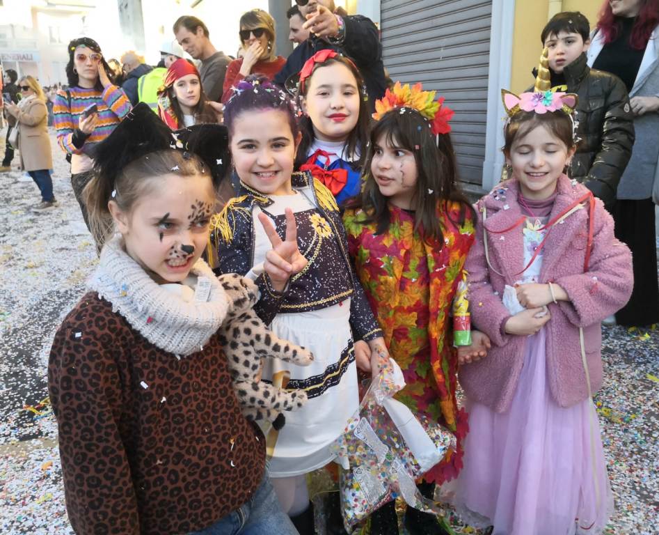 Migliaia di persone hanno preso d’assalto il centro cittadino in un tripudio di coriandoli, costumi e allegria contagiosa, rendendo la giornata una vera festa collettiva.