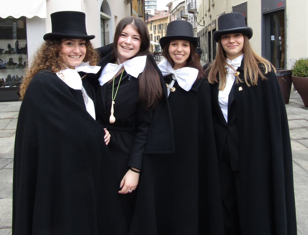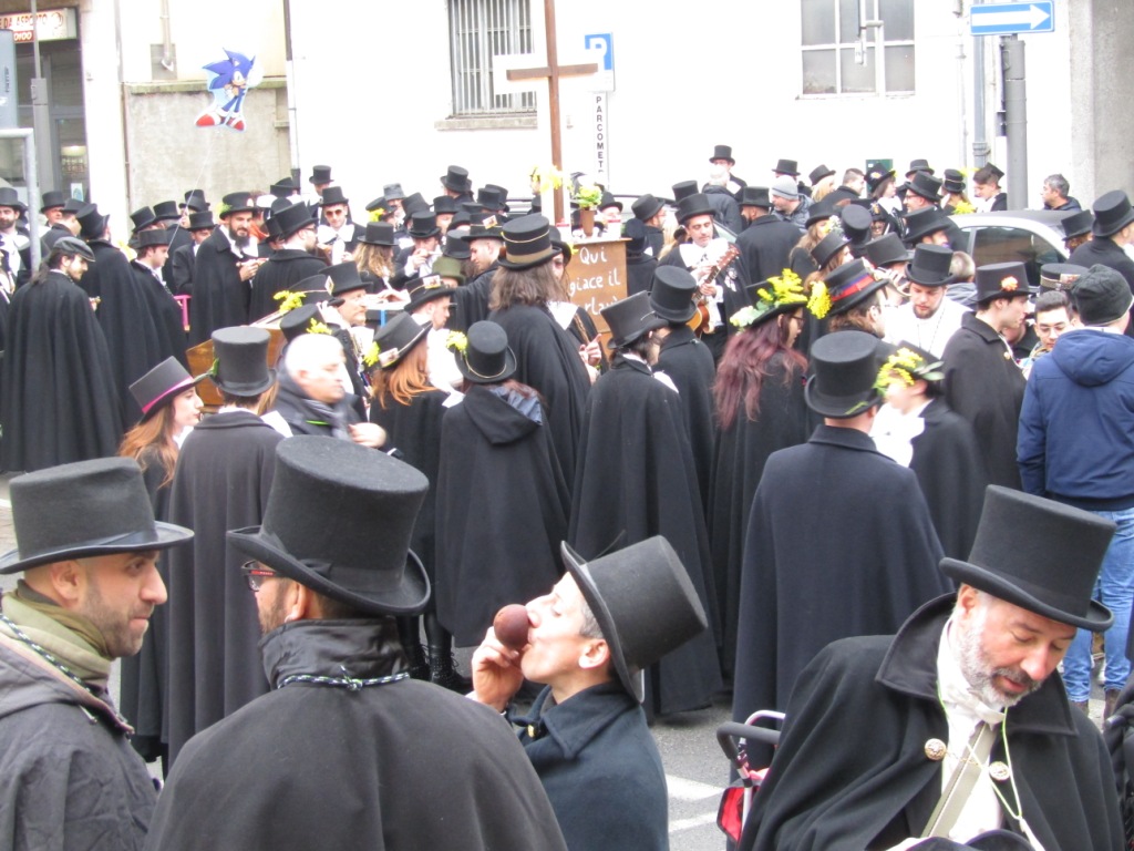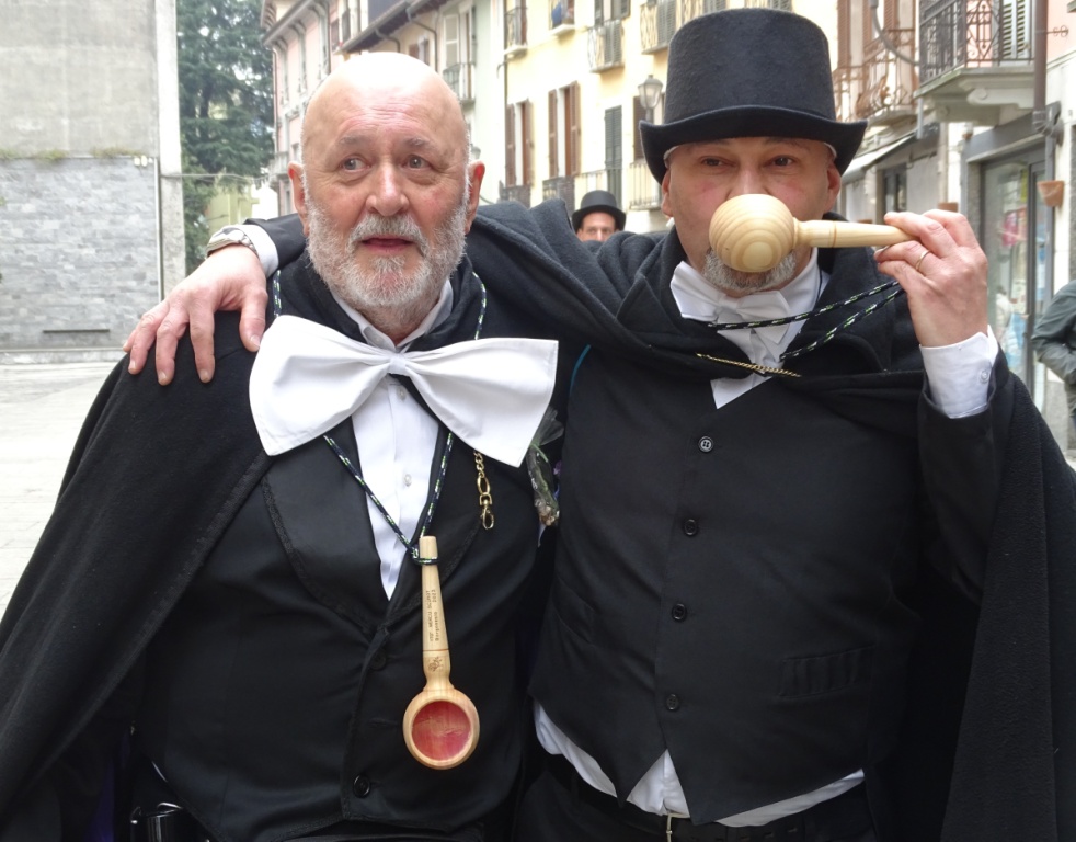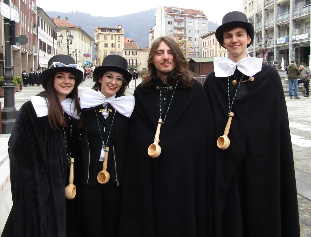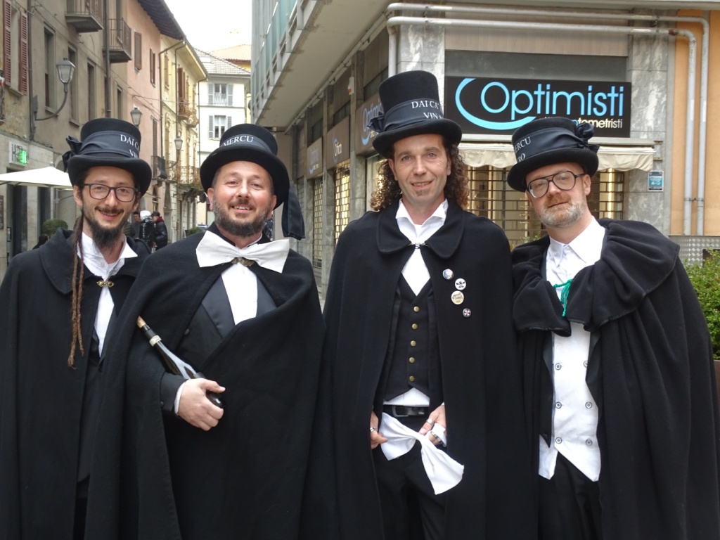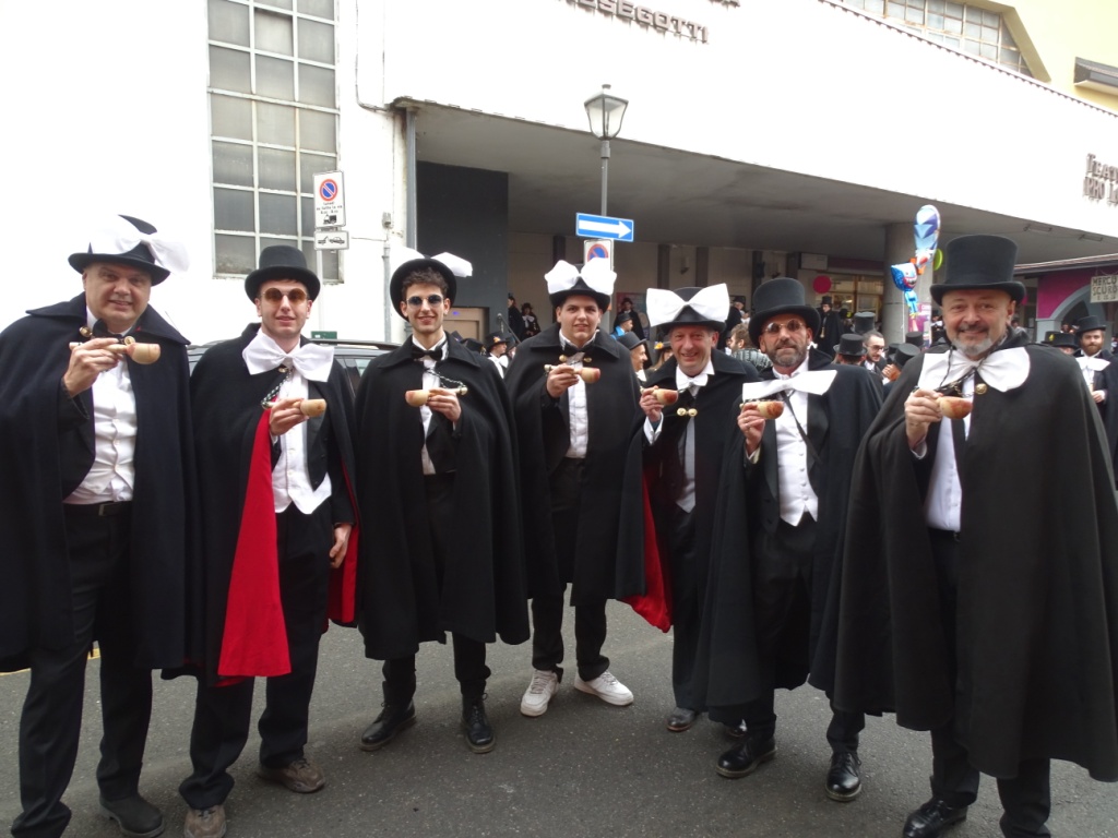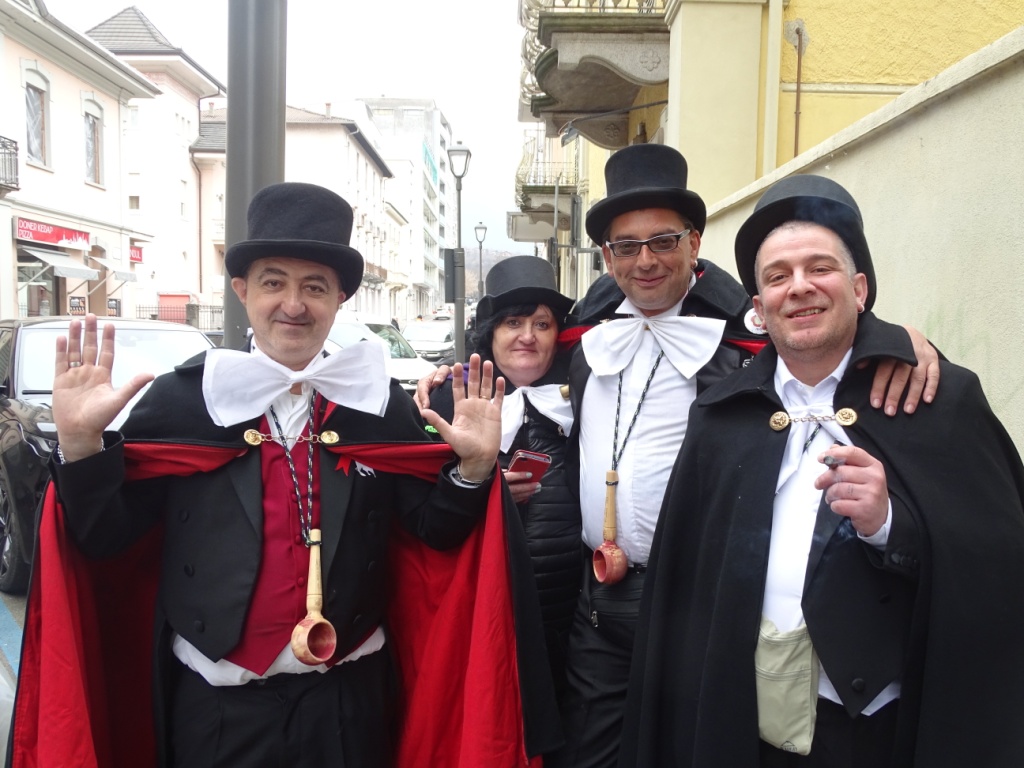 Le vie di Borgosesia erano invase dai “Cilindrati” vestiti con frac, mantello nero, fiocco bianco e cilindro e con l’inseparabile “cassù” utilizzato per bere nelle varie osterie.