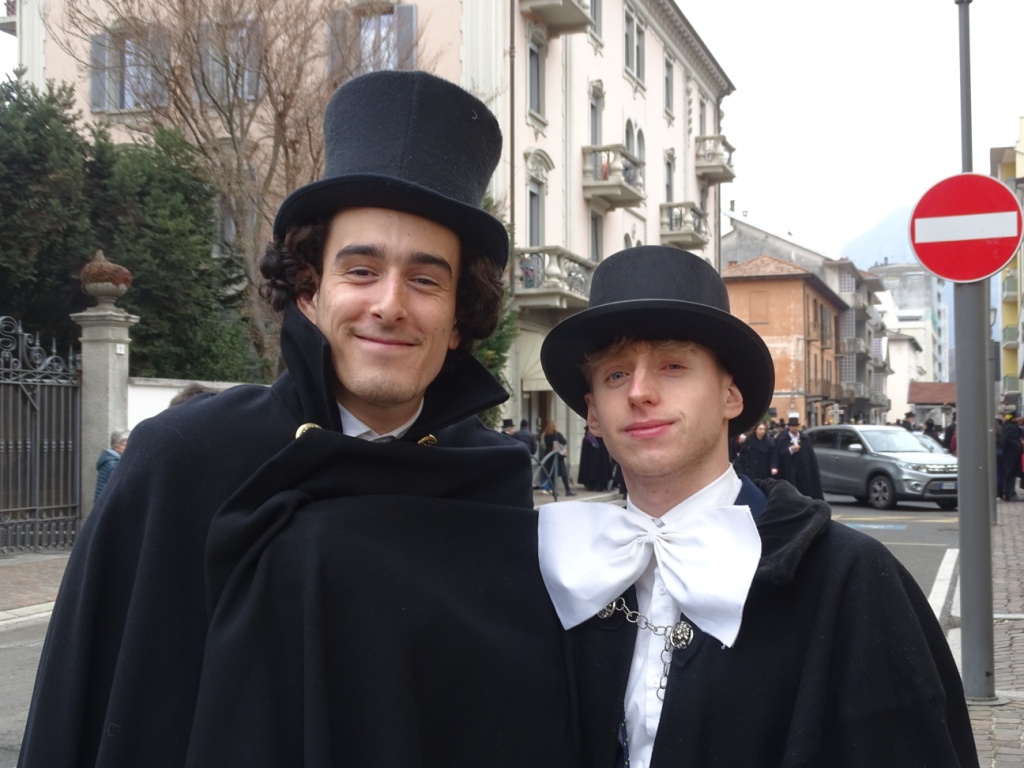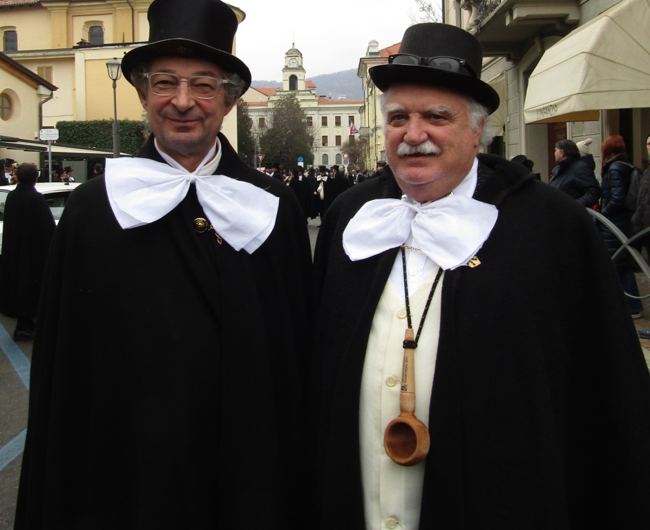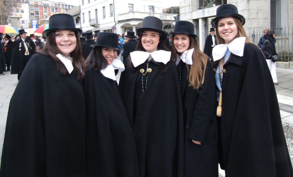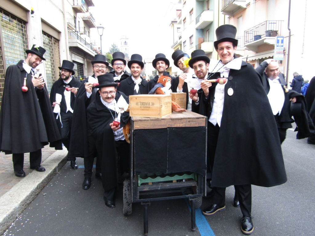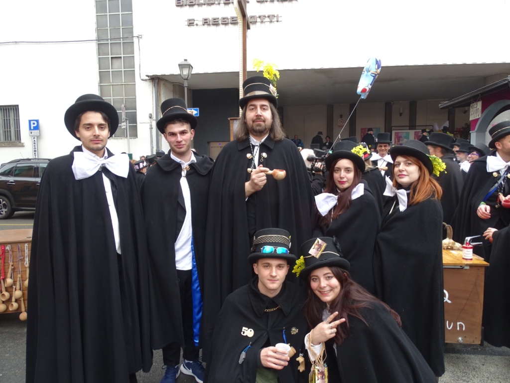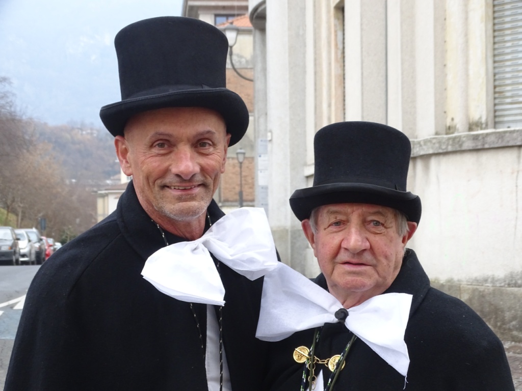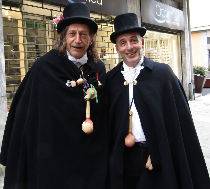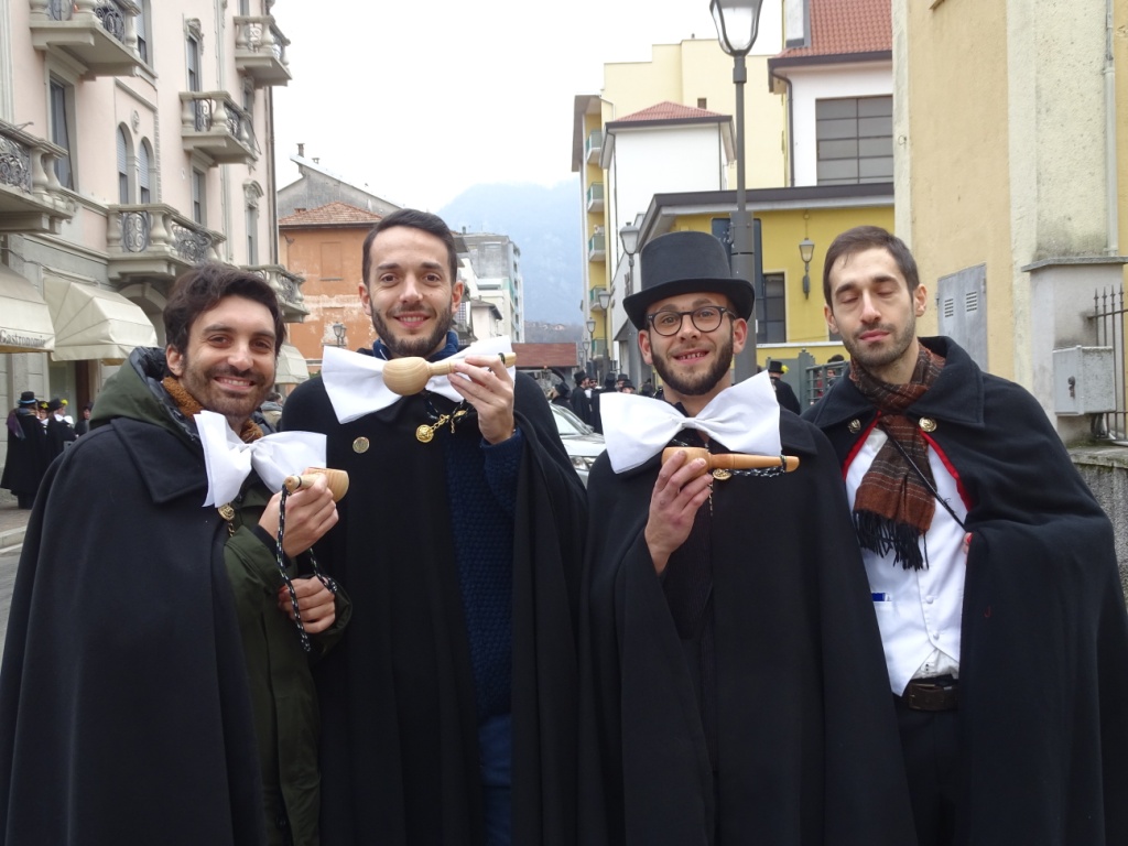 Le vie di Borgosesia erano invase dai “Cilindrati” vestiti con frac, mantello nero, fiocco bianco e cilindro e con l’inseparabile “cassù” utilizzato per bere nelle varie osterie.