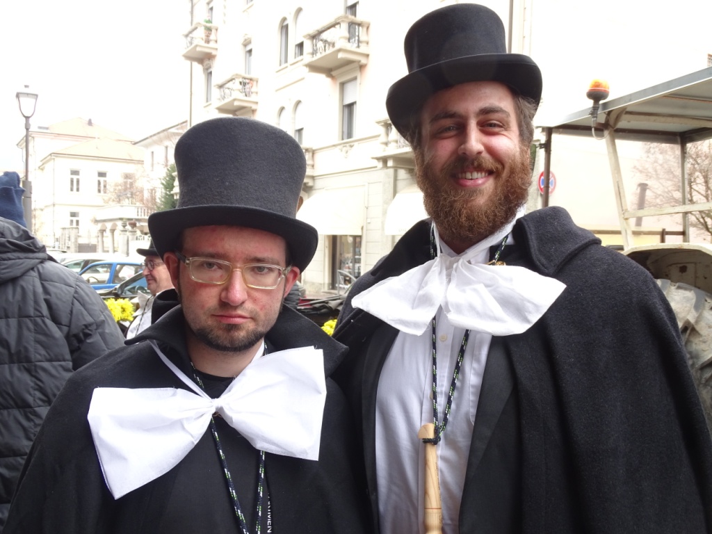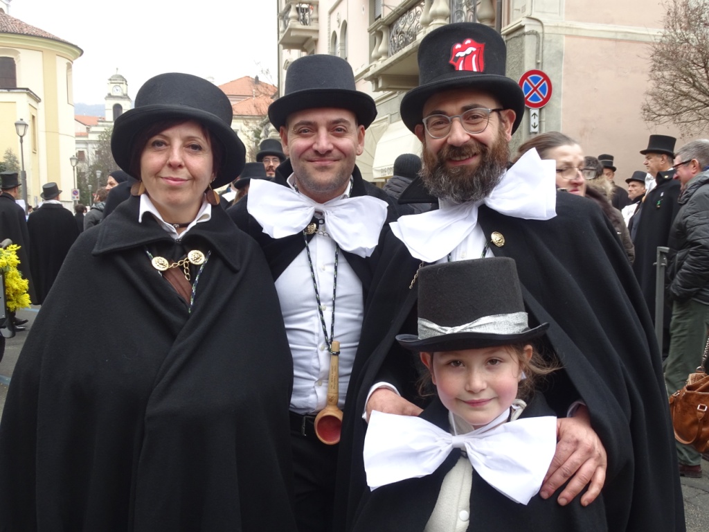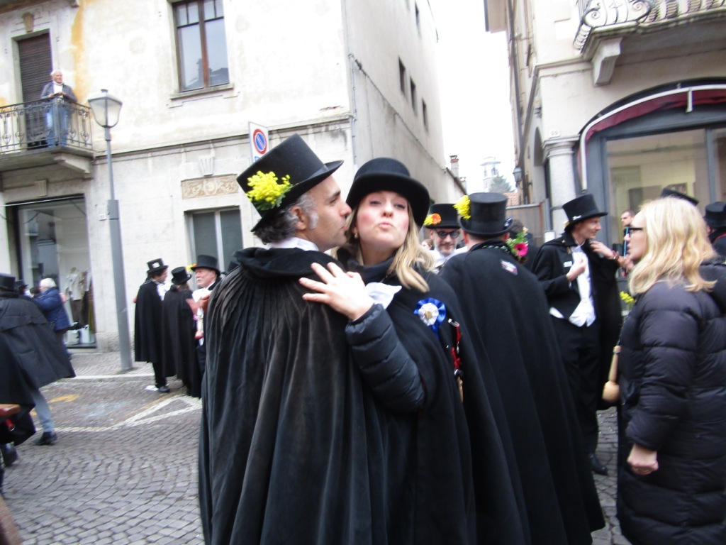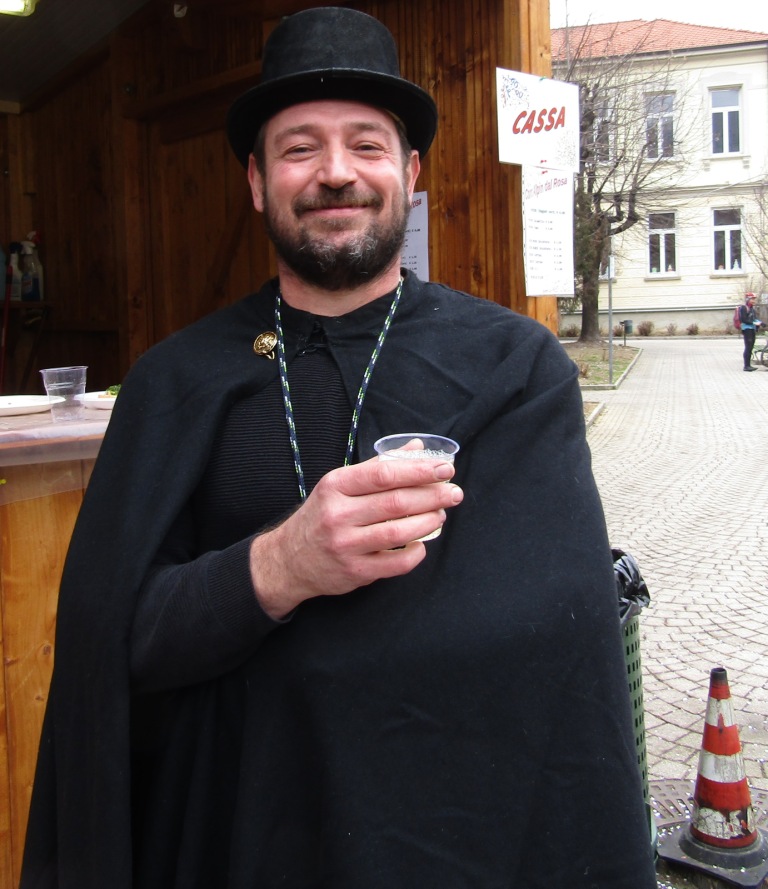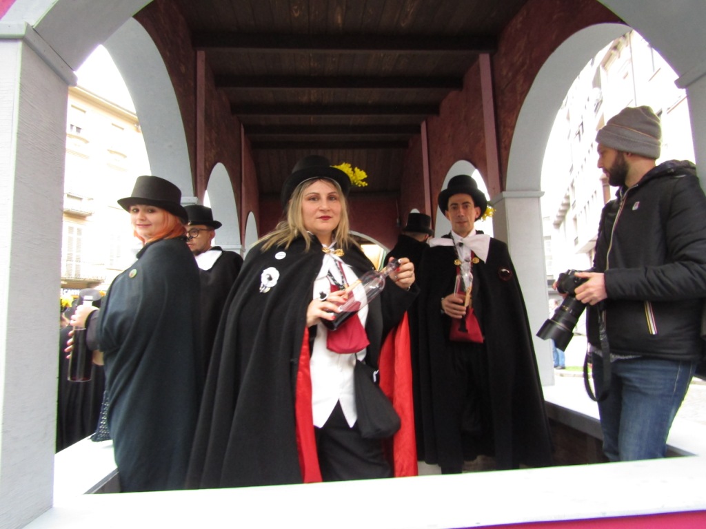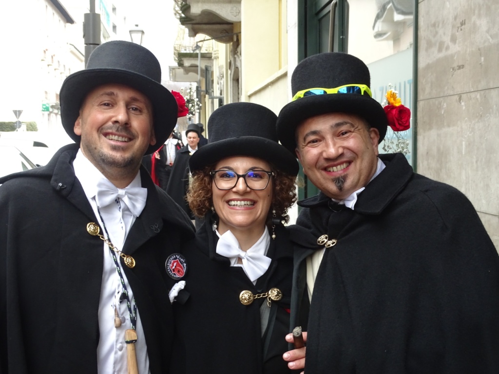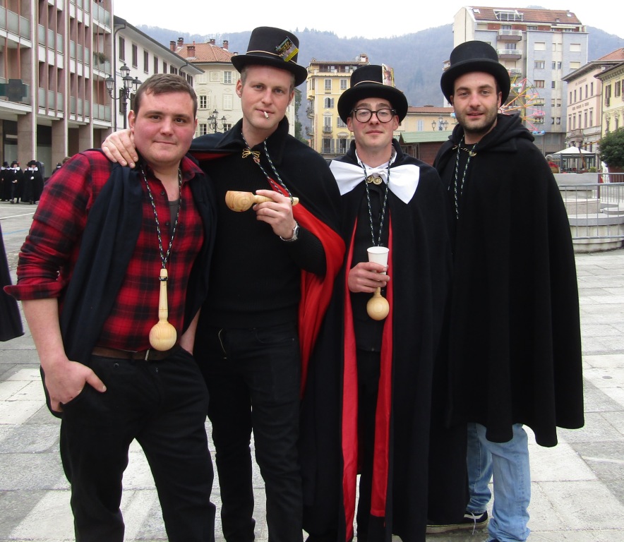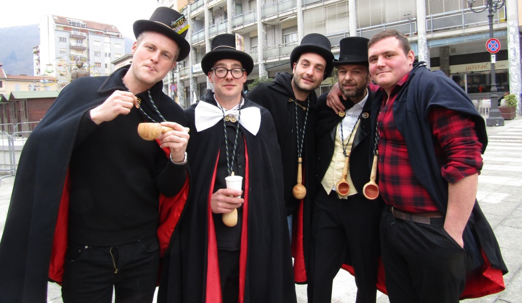 Le vie di Borgosesia erano invase dai “Cilindrati” vestiti con frac, mantello nero, fiocco bianco e cilindro e con l’inseparabile “cassù” utilizzato per bere nelle varie osterie.