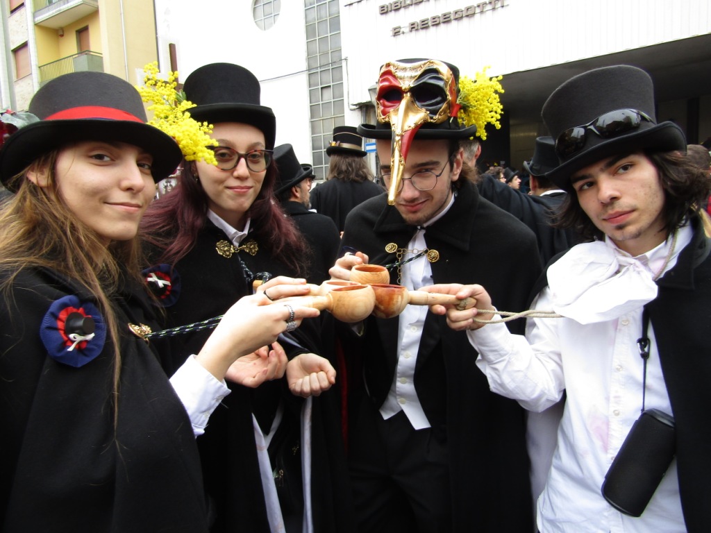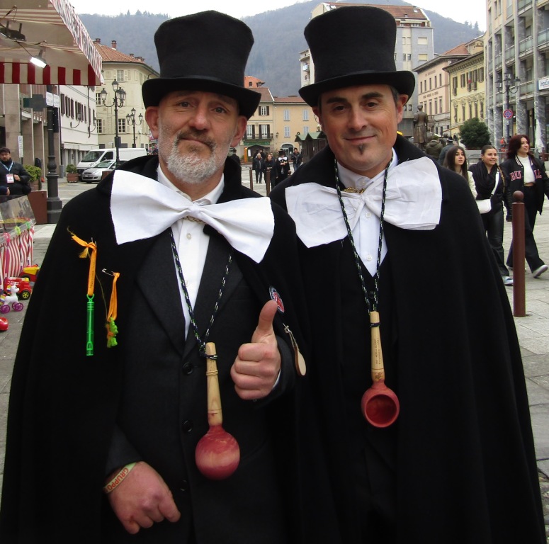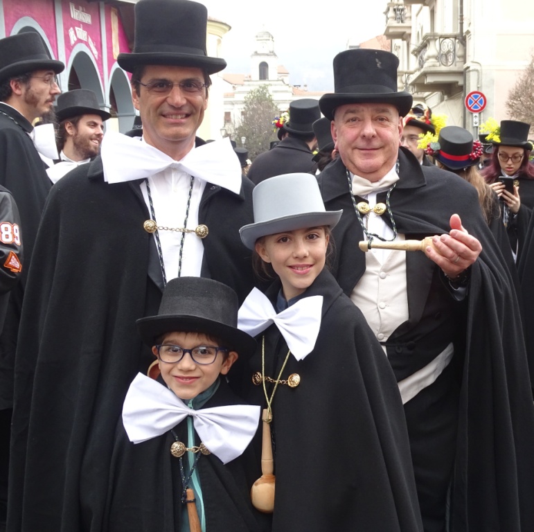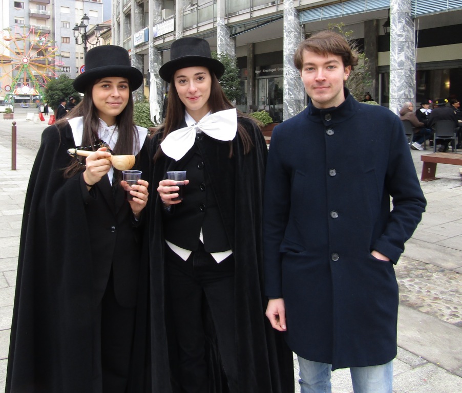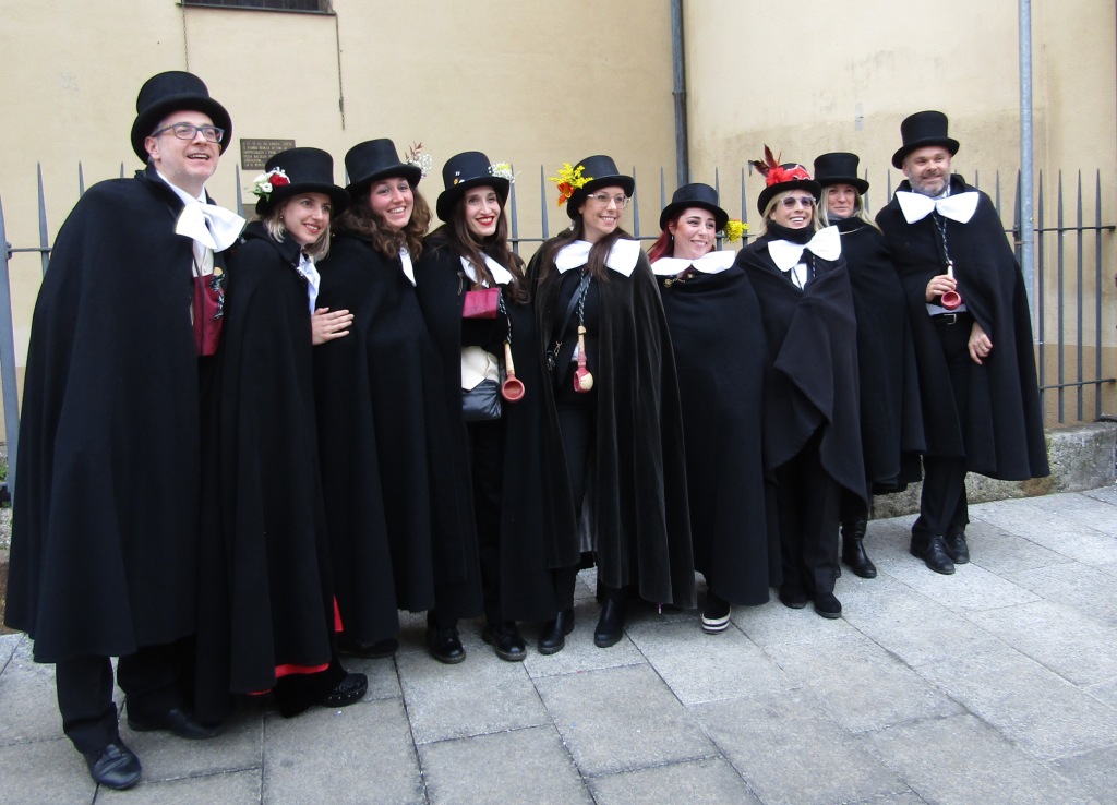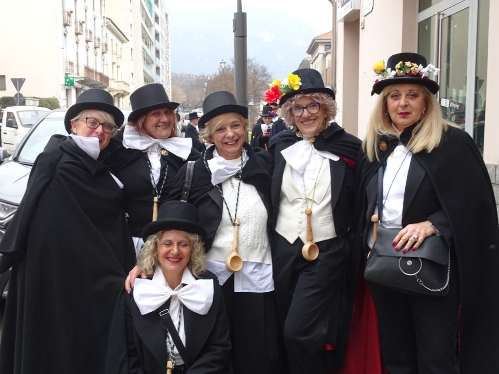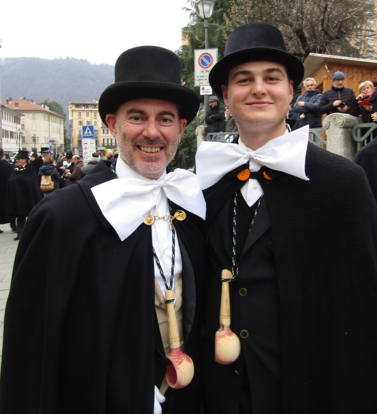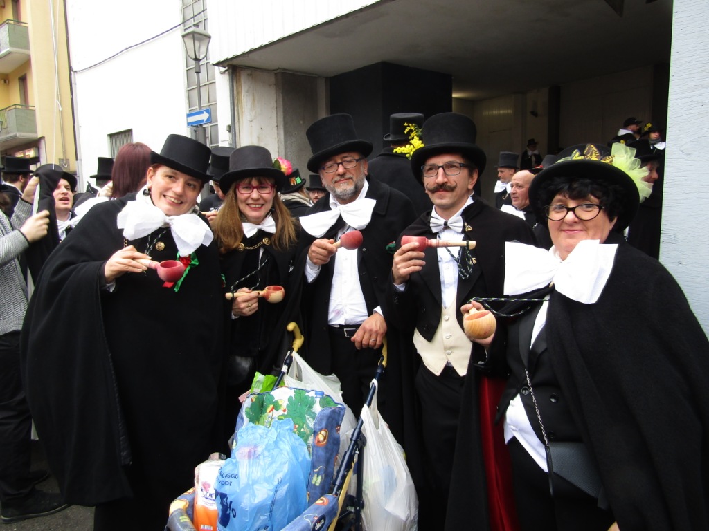 Le vie di Borgosesia erano invase dai “Cilindrati” vestiti con frac, mantello nero, fiocco bianco e cilindro e con l’inseparabile “cassù” utilizzato per bere nelle varie osterie.