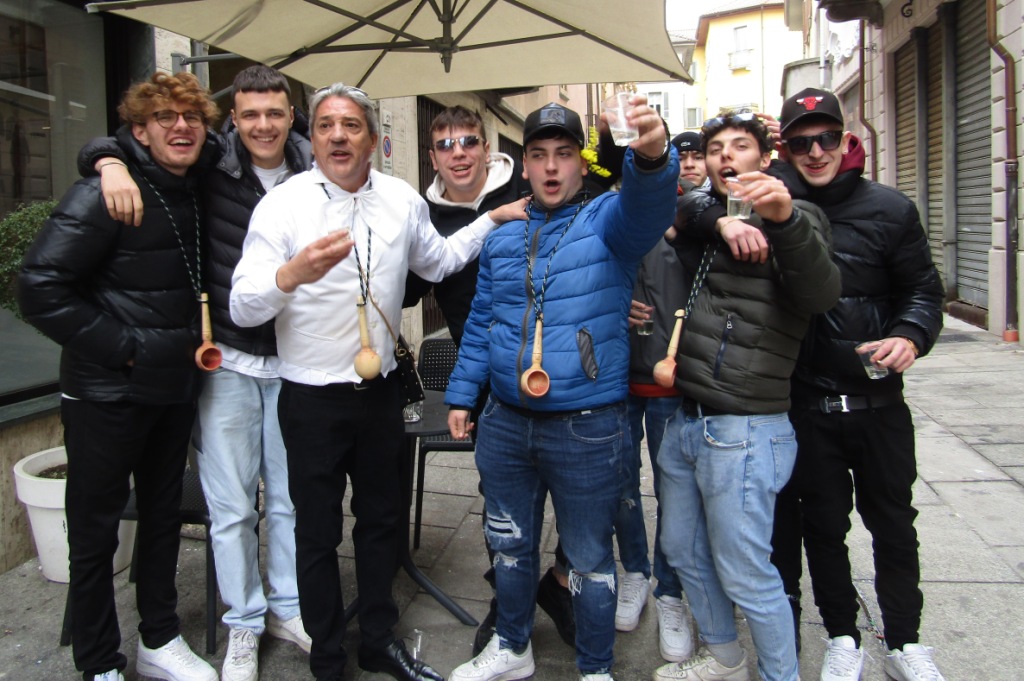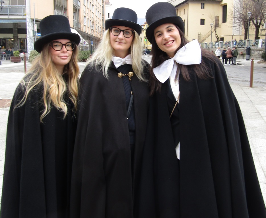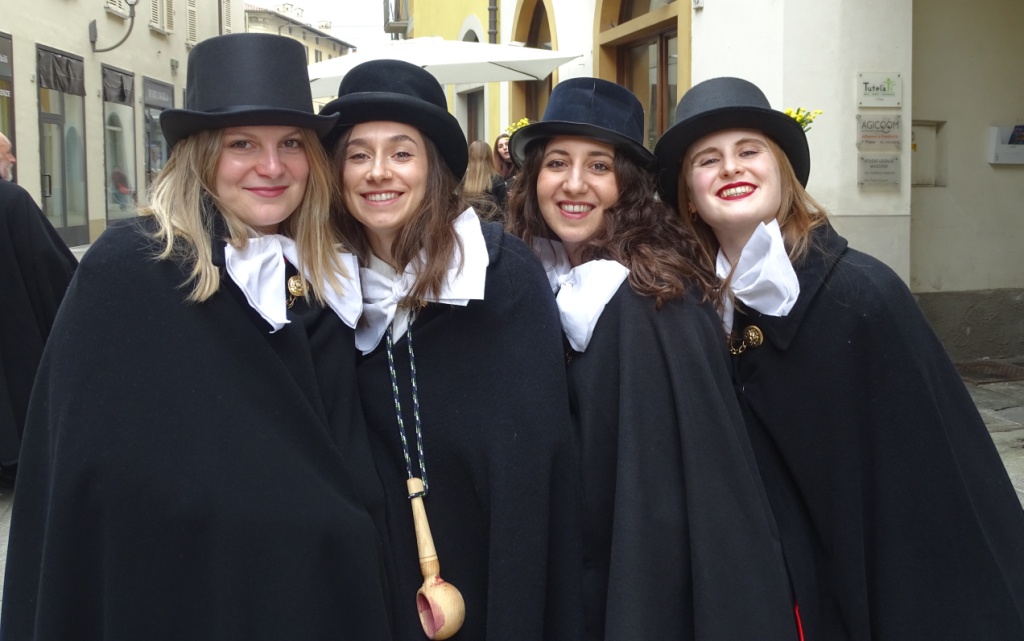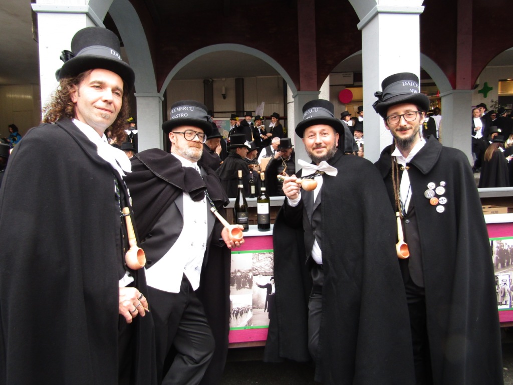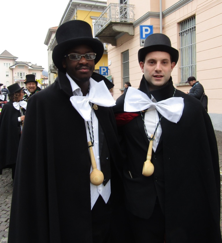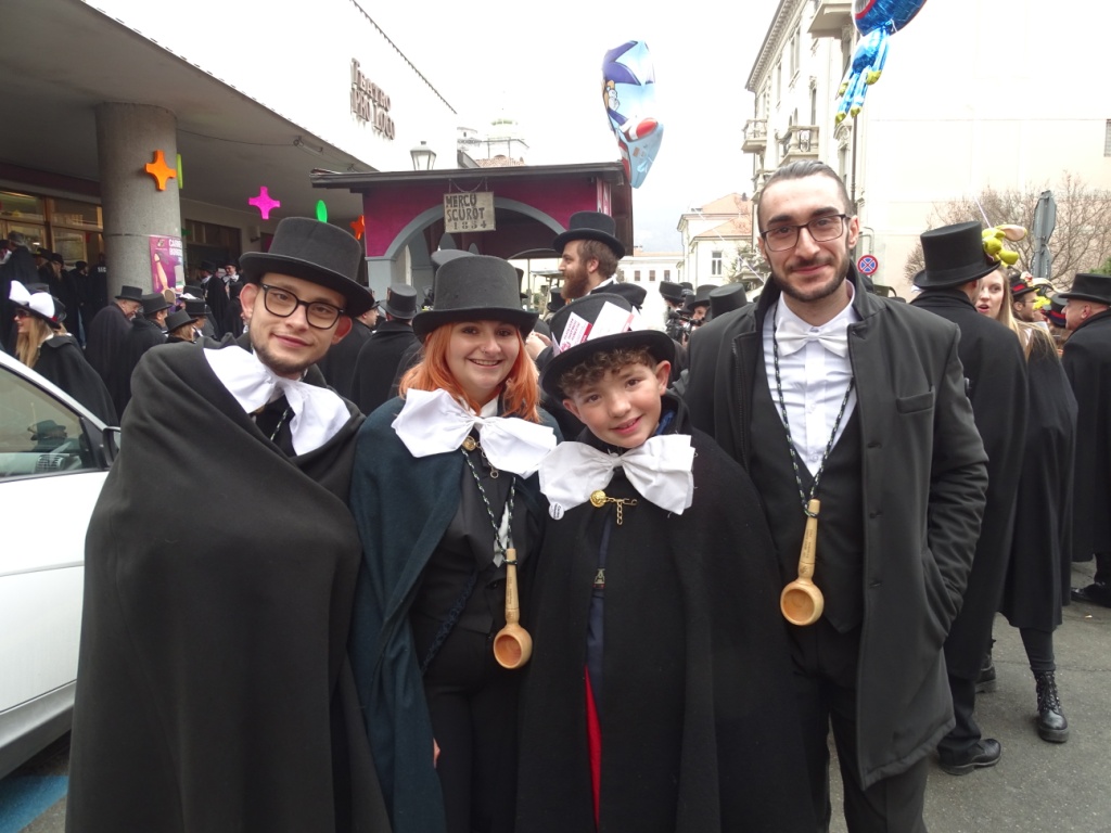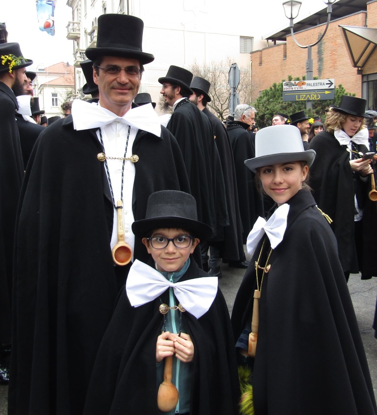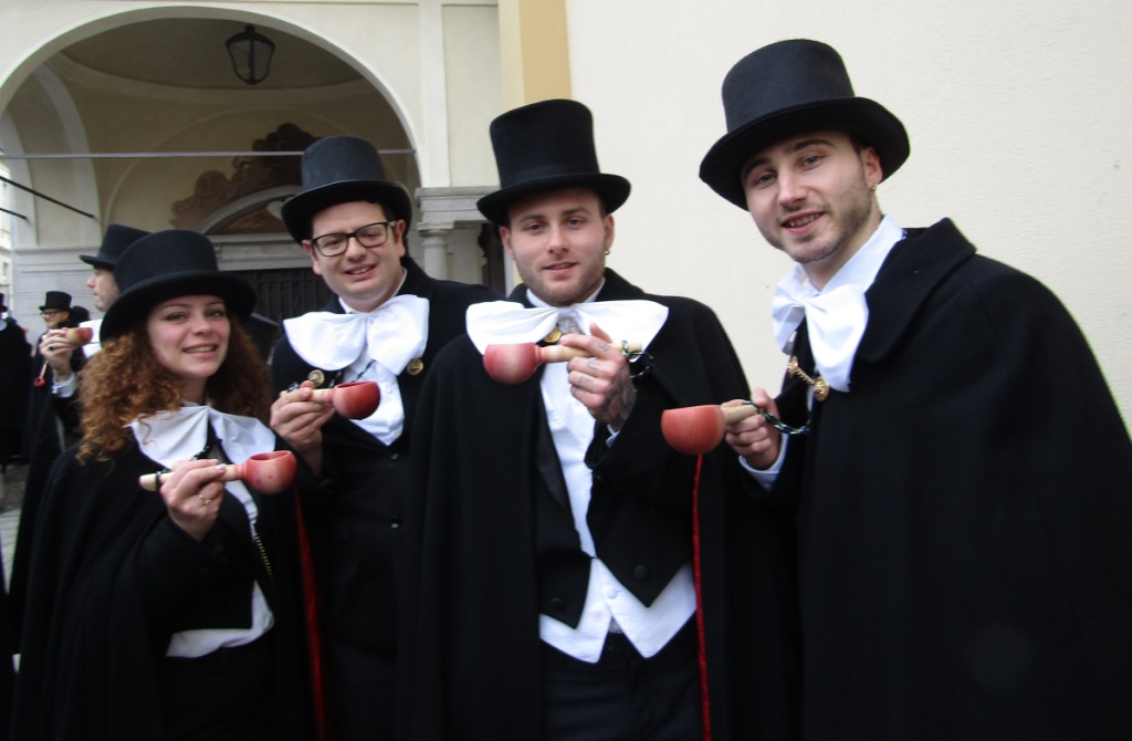 Le vie di Borgosesia erano invase dai “Cilindrati” vestiti con frac, mantello nero, fiocco bianco e cilindro e con l’inseparabile “cassù” utilizzato per bere nelle varie osterie.