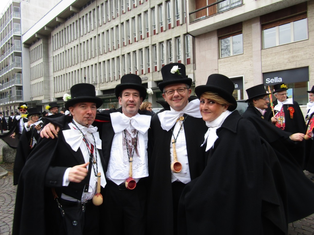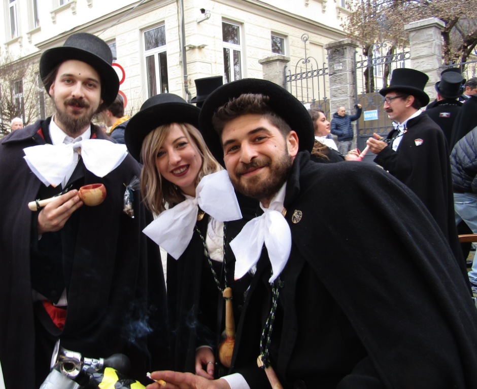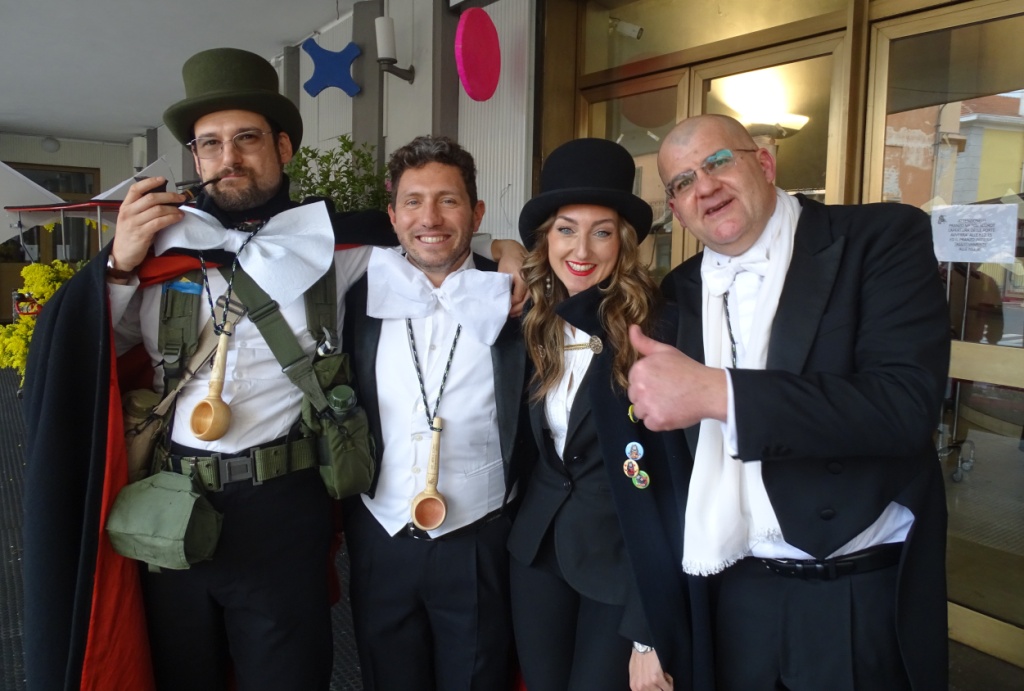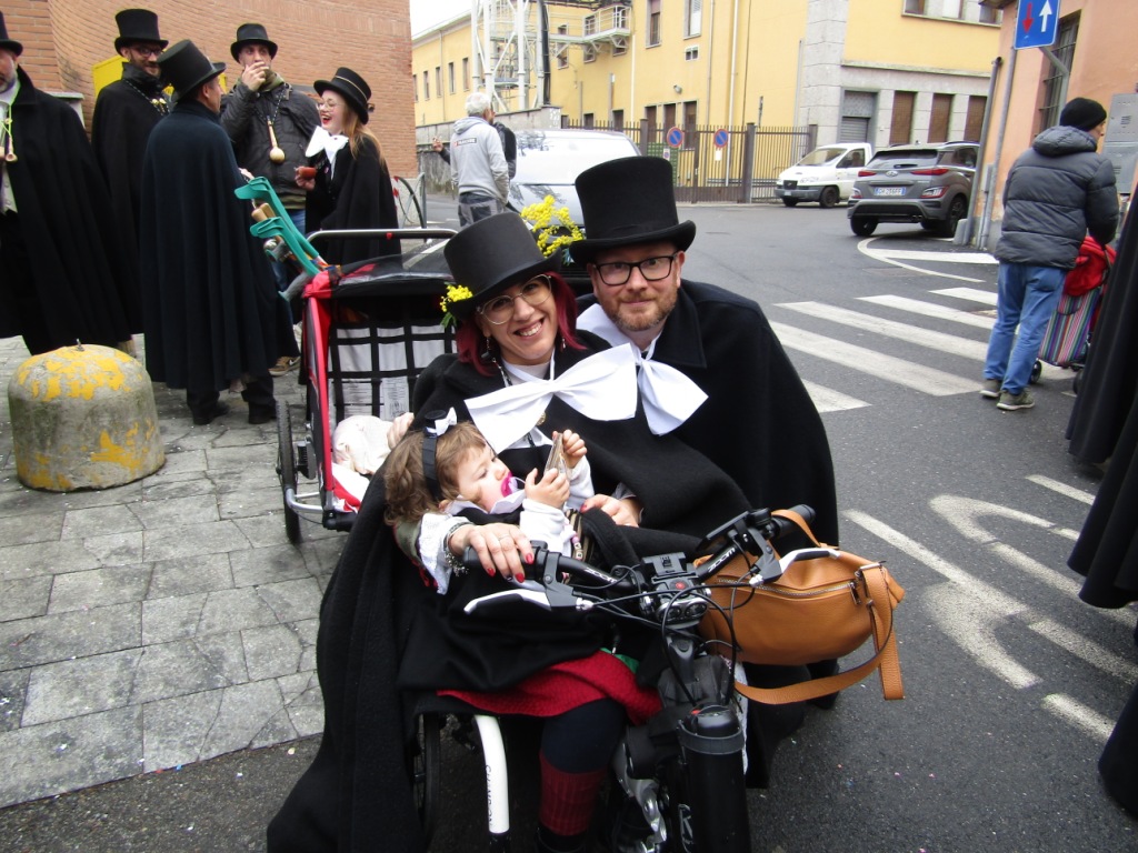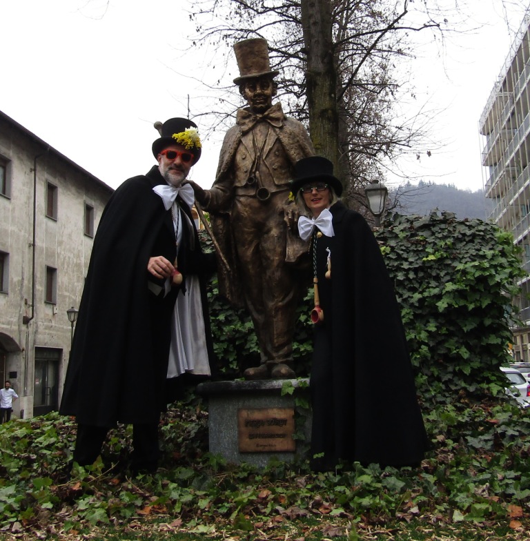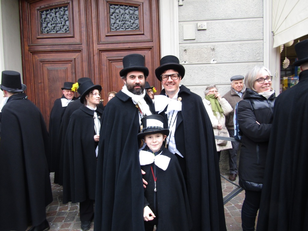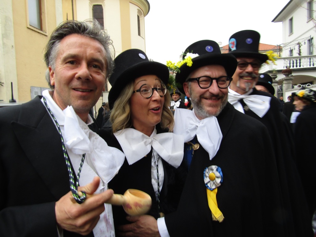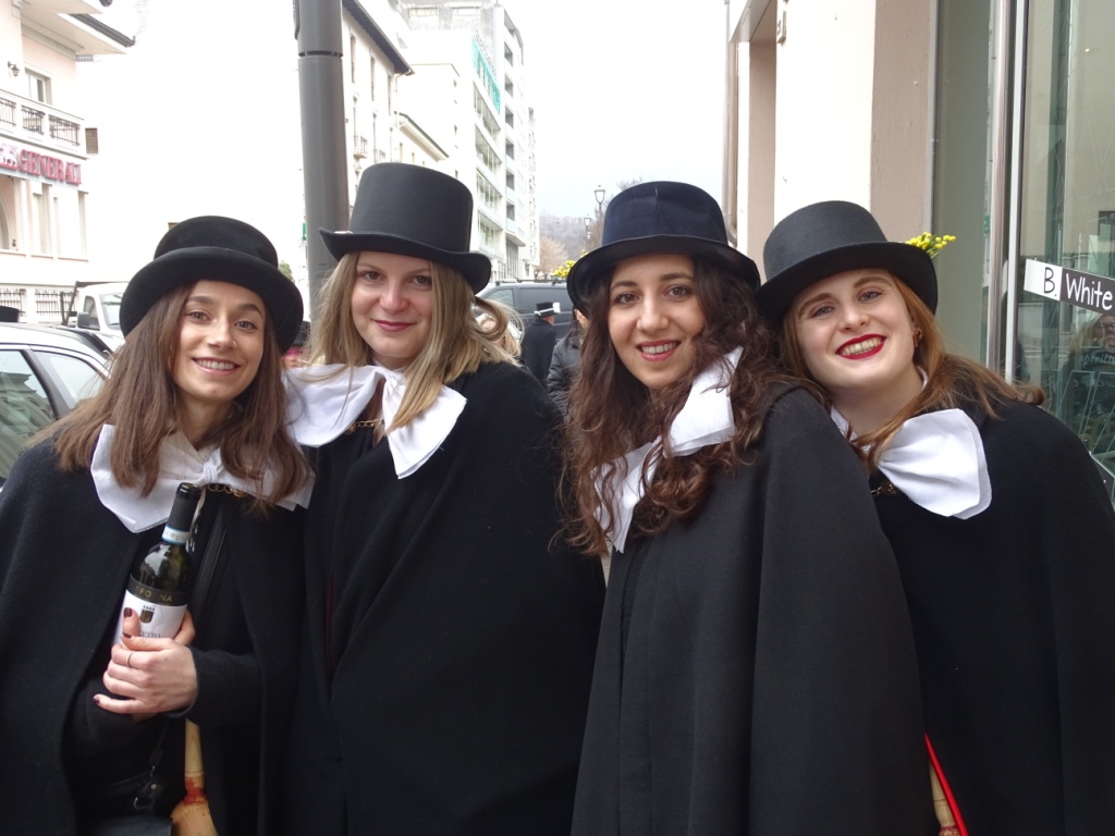 Le vie di Borgosesia erano invase dai “Cilindrati” vestiti con frac, mantello nero, fiocco bianco e cilindro e con l’inseparabile “cassù” utilizzato per bere nelle varie osterie.