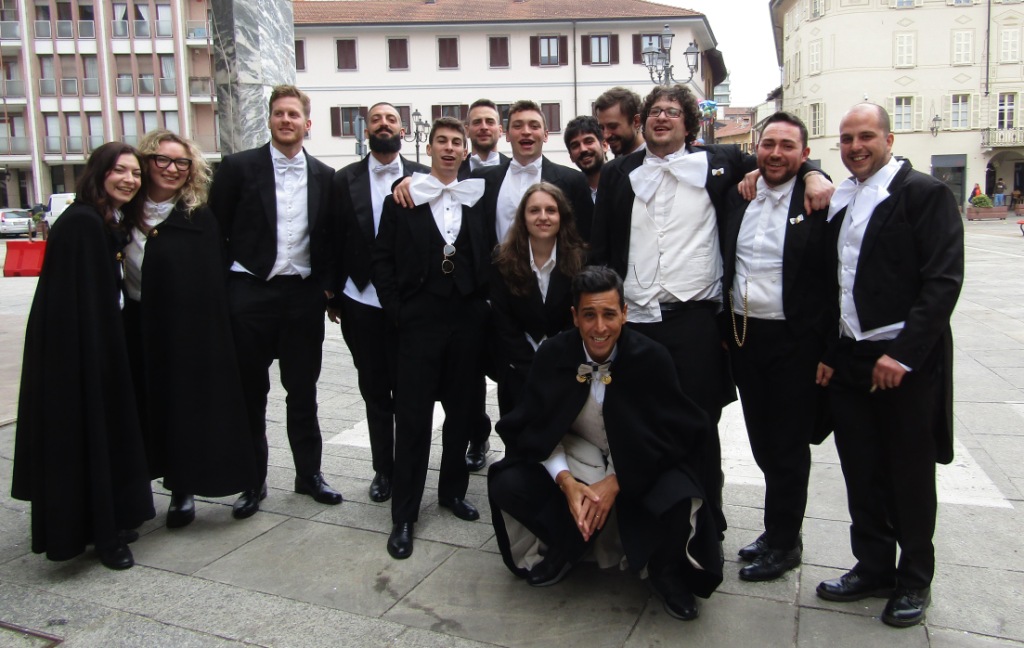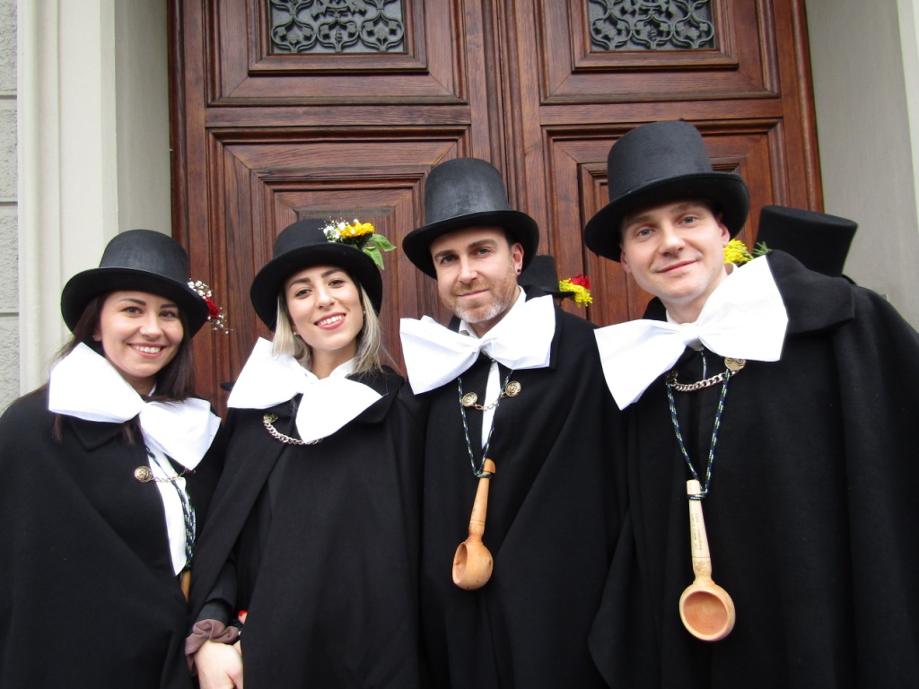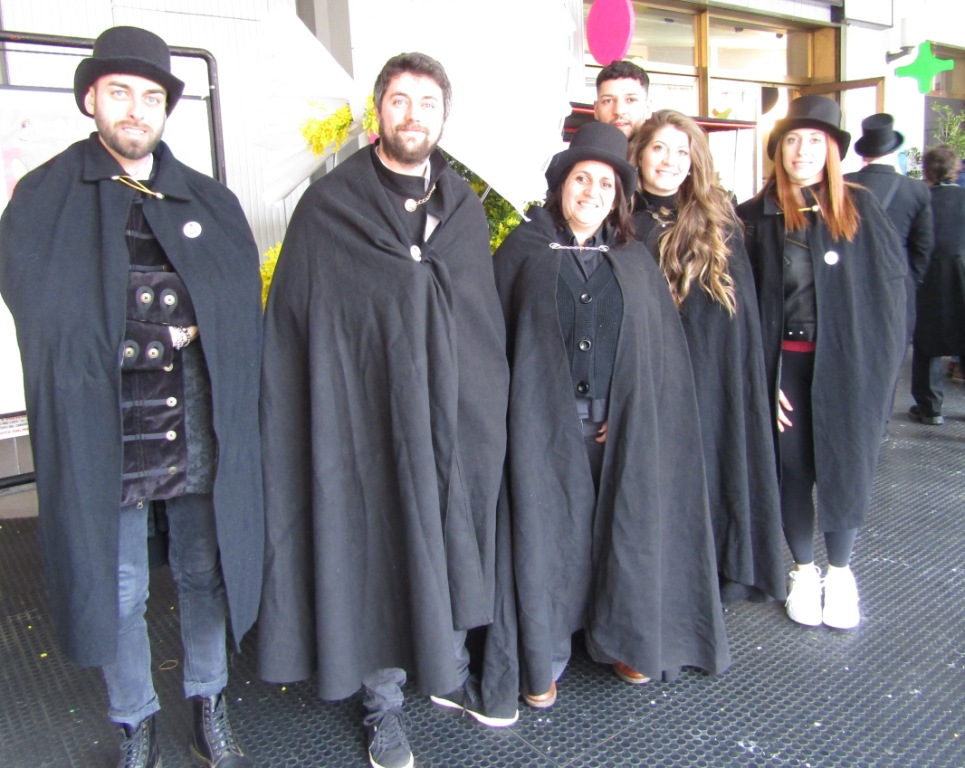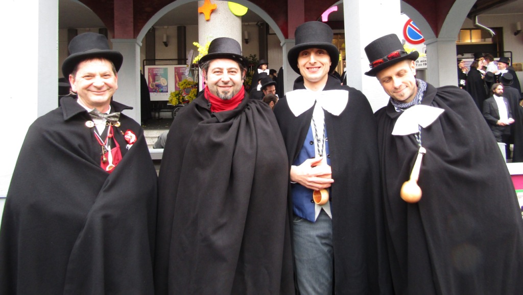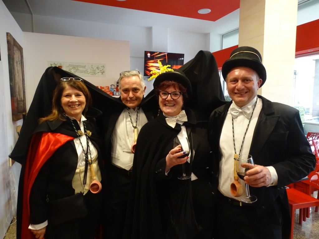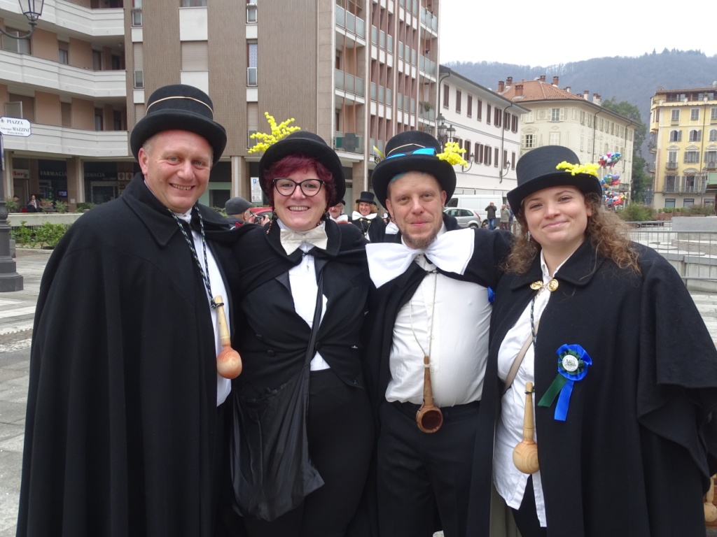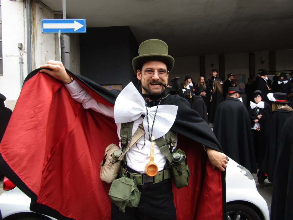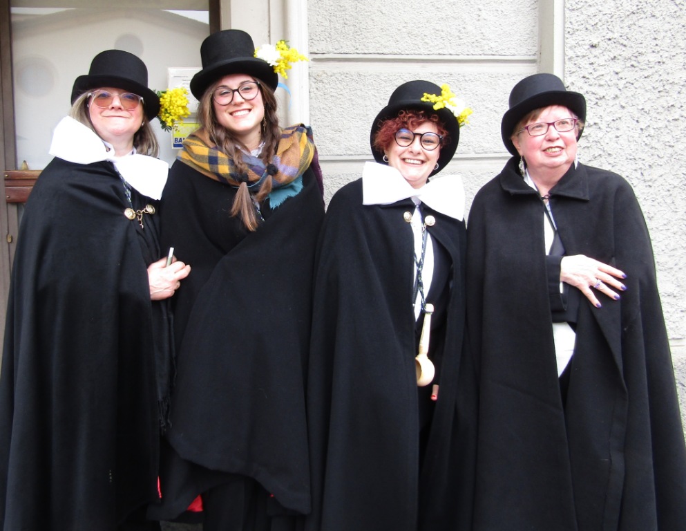 Le vie di Borgosesia erano invase dai “Cilindrati” vestiti con frac, mantello nero, fiocco bianco e cilindro e con l’inseparabile “cassù” utilizzato per bere nelle varie osterie.