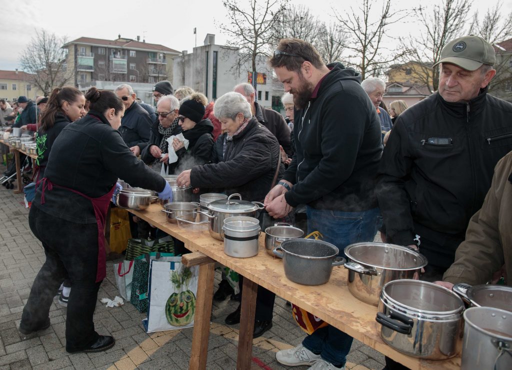 Lunedì 12 febbraio sono stati distribuiti 20 quintali di fagioli e 10 quintali di salami, per un totale di 20mila razioni.