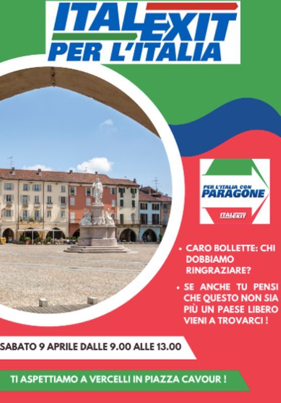 Il gazebo, avamposto di libertà Italexit che sarà allestito in Piazza Cavour a Vercelli, si occuperà, sabato 9 aprile, dalle ore 9 alle ore 13, di caro bollette ed energia.