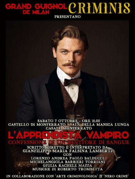 Sabato 7 ottobre 2023 alle ore 21,00 nella Manica Lunga del Castello del Monferrato, il Grand Guignol, la Compagnia che dopo 68 anni ha riportato in italia l’antico teatro della cronaca nera e dell’orrore, porterà a Casale Monferrato “L’apprendista vampiro. Confessione di un bevitore di sangue”, spettacolo scritto, diretto e interpretato da Gianfilippo Maria Falsina Lamberti che racconta il più folle e crudele serial killer inglese di inizio ‘900: John Haigh, detto il Vampiro di Londra.
