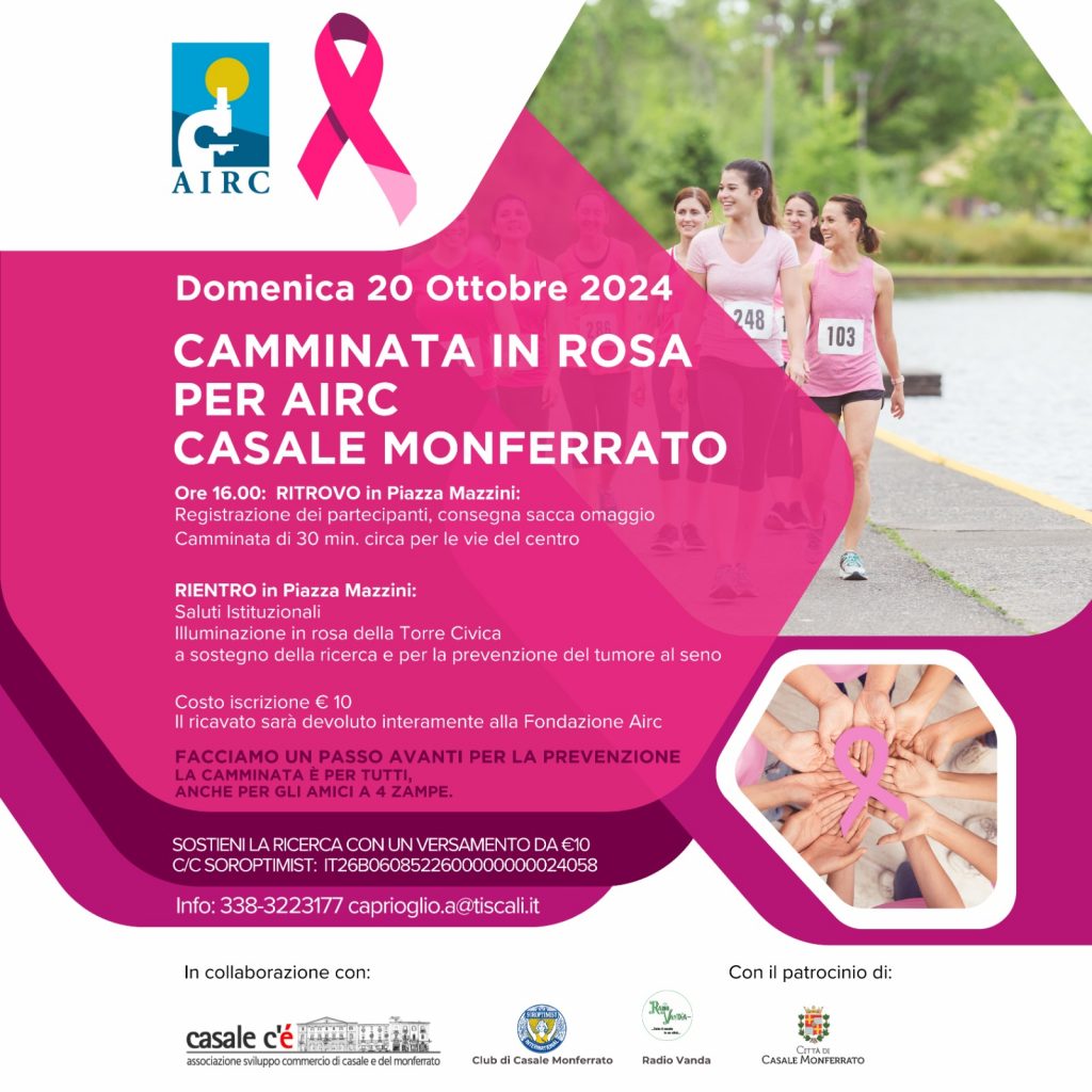 Il prossimo 20 ottobre 2024, Casale Monferrato accoglierà la Camminata in Rosa per sostenere la ricerca e la prevenzione del tumore al seno.