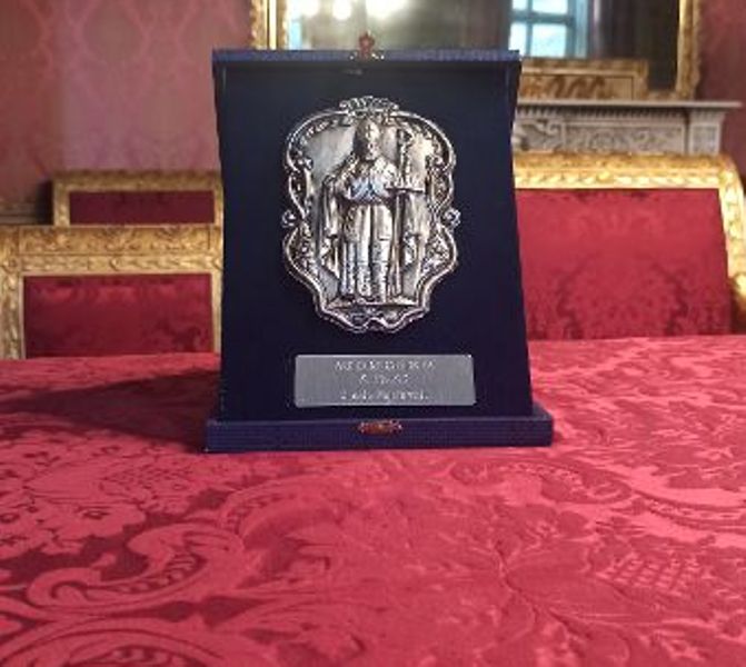 Il medaglione settecentesco in argento riprodotto in pochi esemplari dagli argentieri casalesi Giuseppe e Claudio Marotto, è stato consegnato dal Priore, Architetto Carlo Lepri, che ha svolto un intervento relativo ai legami storici ed attuali tra la città di Casale Monferrato e il patrono Sant’Evasio, facendo un excursus storico dalla Casale d’ san Vas fino ai giorni nostri.