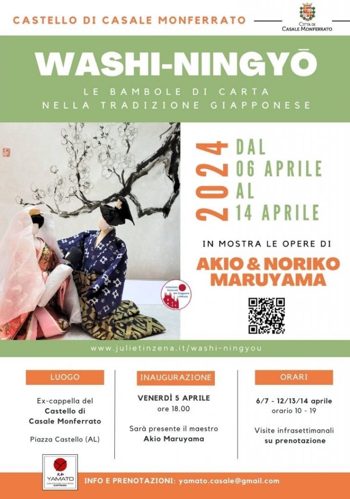 Contestualmente alla mostra, il maestro Maruyama proporrà per la prima volta in Italia laboratori in presenza dedicati alla realizzazione delle Washi Ningyo, per diffondere la conoscenza di quest’arte e condividere la passione per l’artigianato tradizionale giapponese: per maggiori informazioni sarà possibile scrivere all’indirizzo email yamato.casale@gmail.com