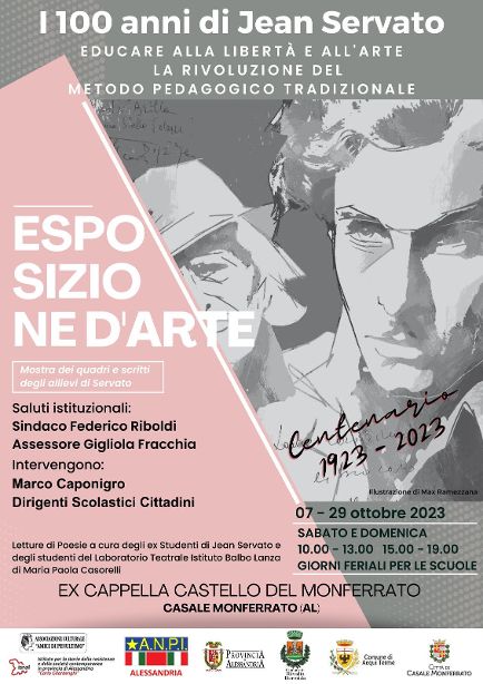 Sabato 7 ottobre alle ore 10,00 nella Cappella Paleologa del Castello del Monferrato verrà inaugurata la mostra “Educare alla Libertà e all’Arte – La rivoluzione del metodo pedagogico tradizionale”, un’esposizione di opere pittoriche e poesie degli allievi della scuola di Servato con illustrazione del metodo didattico che sarà visitabile fino a domenica 29 ottobre.