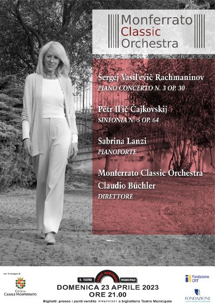 Domenica 23 aprile, alle 21, al Teatro Municipale di Casale Monferrato si esibisce la Monferrato Classic Orchestra, diretta da Claudio Büchler, in un programma straordinario, con la pianista Sabrina Lanzi interprete del famosissimo «Rach 3».