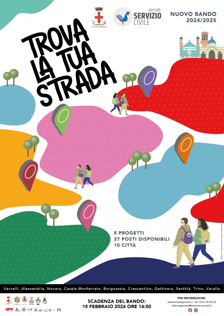La Città di Casale Monferrato aderisce con altri 14 enti, con il Comune di Vercelli capofila, e sono previsti 37 posti dedicati a giovani italiani o stranieri, che abbiano un’età compresa fra i 18 e i 28 anni alla data di presentazione della domanda.