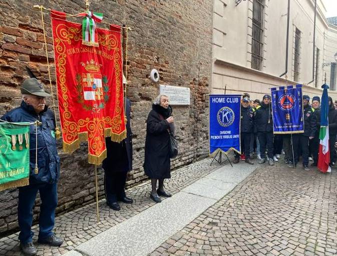 Come da tradizione è stata posta una corona di alloro in onore alle vittime della Shoah alla targa di Via Alessandria in prossimità del cardine su cui poggiava il cancello del Ghetto.