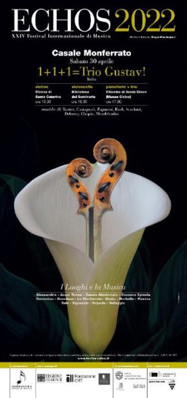 Sabato 30 aprile il Trio Gustav, uno dei migliori trii classici d’Italia, sarà protagonista di un’imperdibile passeggiata musicale a Casale Monferrato: il percorso inizierà alle 15.30 dalla Chiesa di Santa Caterina e proseguirà alla Biblioteca del Seminario (16.30) per concludersi al Chiostro di Santa Croce (17.30).