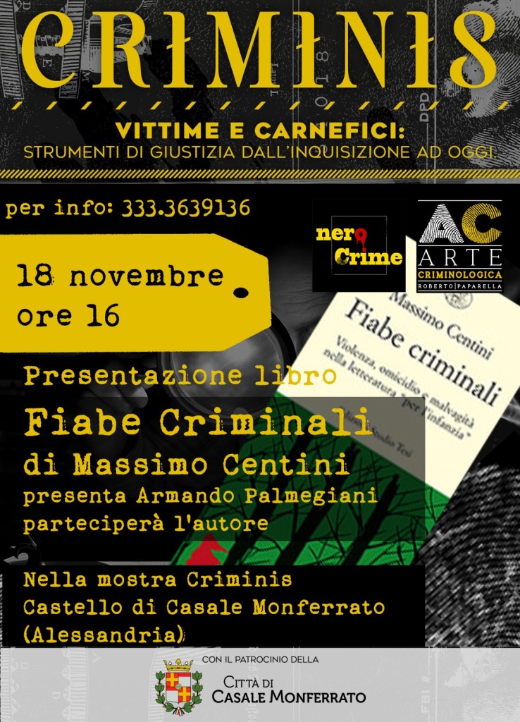 Rientra tra i numerosi eventi collaterali della mostra “Criminis” la presentazione del libro di Massimo Centini “Fiabe Criminali” che si terrà nella Ex Cappella del Castello del Monferrato, sabato 18 novembre 2023 alle ore 16,00.