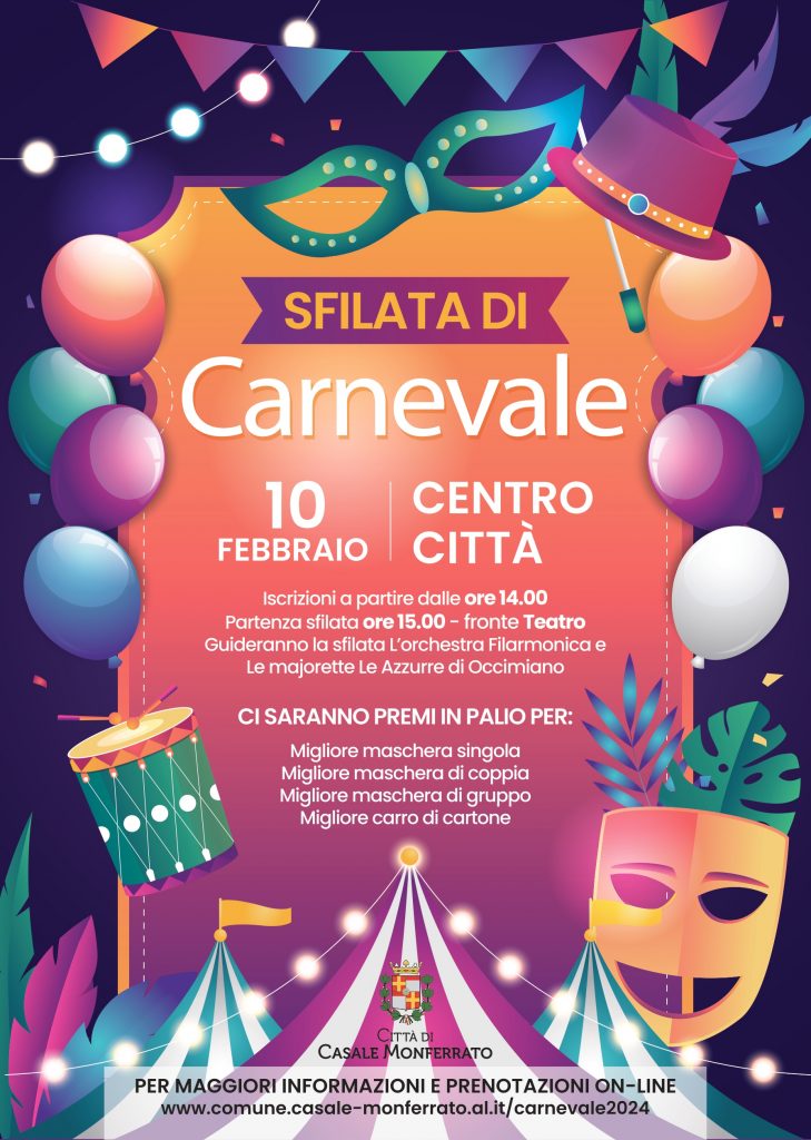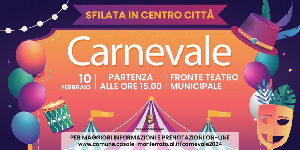Sabato 10 febbraio 2024 il centro storico di Casale Monferrato sarà animato dalla festa di Carnevale che si svolgerà, rinnovando la sua tradizione che si lega alla storia e al territorio monferrino con alcuni aspetti inediti.