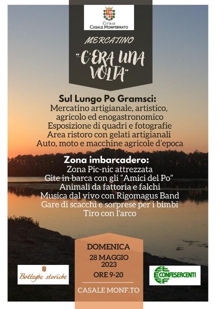Sul Lungo Po Gramsci troveranno posto i banchi del mercatino artigianale, artistico, agricolo ed enogastronomico ma anche un’esposizione di quadri e fotografie (con protagoniste le Botteghe Storiche di Casale) e anche auto, moto e macchine agricole d’epoca a cura de ‘…La Cumbricula di tratur vecc’, oltre ai gelati artigianali a cura di Igor Panarotto.