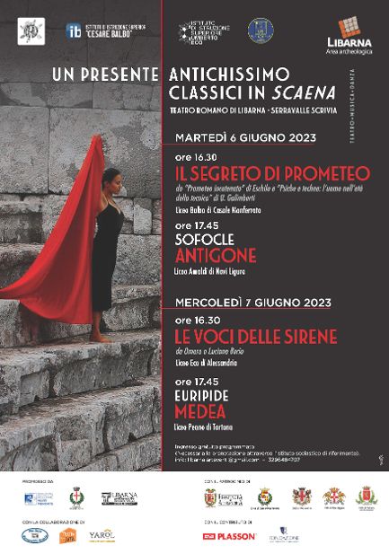 Martedì 6 e mercoledì 7 giugno l’Area archeologica di Libarna accoglierà, all’interno della meravigliosa cornice del teatro antico, la terza edizione della rassegna “Un presente antichissimo – classici in scaena” con le rappresentazioni dei laboratori teatrali degli Istituti “Amaldi” di Novi Ligure, “Peano” di Tortona, “Umberto Eco” di Alessandria e “Balbo” di Casale Monferrato.