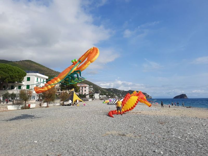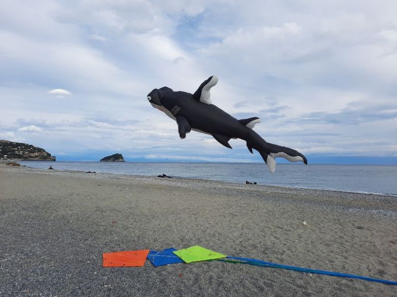 Svolge principalmente attività per bambini e famiglie in Liguria con esibizioni di aquiloni di ogni foggia e grandezza.