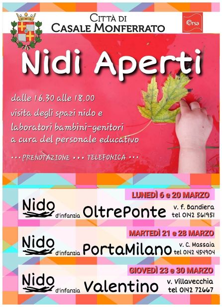 Per informazioni è possibile contattare l’Ufficio Pubblica Istruzione al numero 0142 444204 o all’indirizzo e-mail nidi@comune.casale-monferrato.al.it.