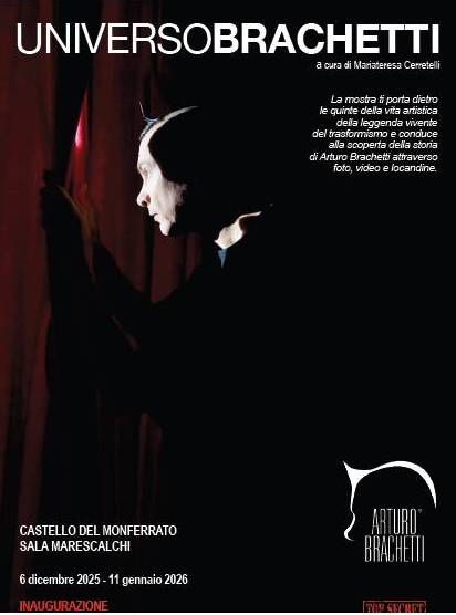Sabato 6 dicembre alle ore 18,00 nel Salone Marescalchi del Castello del Monferrato, aprirà al pubblico “UniversoBrachetti”, un percorso espositivo curato da Mariateresa Cerretelli, dedicato alla straordinaria carriera del Maestro della visual performing art, Arturo Brachetti, che sarà, inoltre, protagonista al Teatro Municipale di Casale Monferrato con il one man show “Solo”, martedì 9 e mercoledì 10 dicembre 2025.