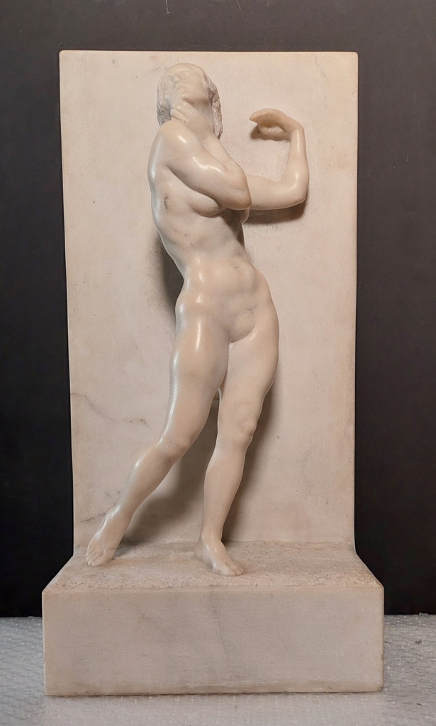 La piccola scultura che verrà presentata è la trasposizione in marmo del bozzetto in gesso già conservato in Gipsoteca; essa verrà successivamente collocate in allestimento nel percorso di visita per completare la serie già esposta.