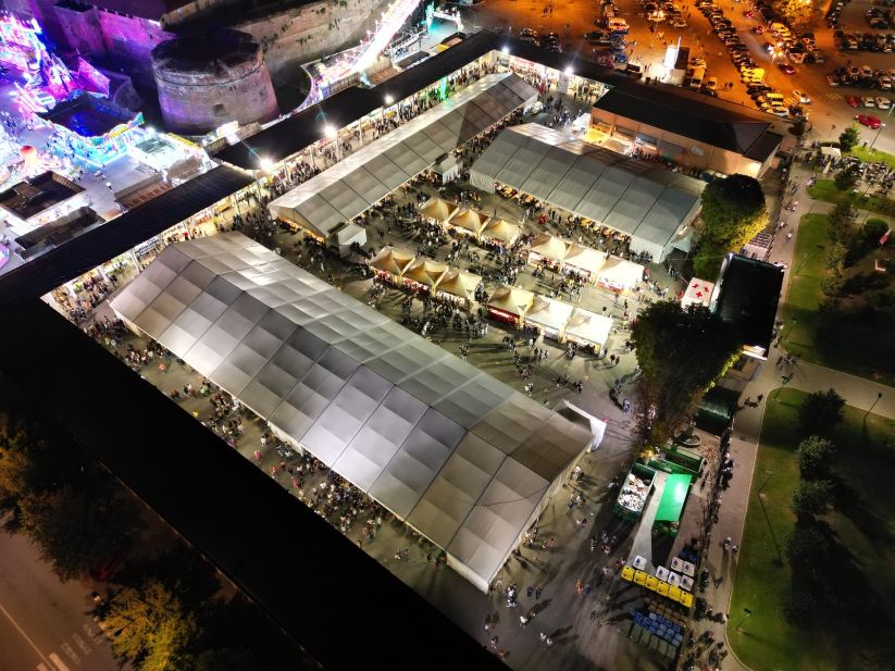 I posti a sedere disponibili sono 4 mila, ma sarà possibile anche il servizio da asporto per potersi portare direttamente a casa le tipicità del territorio.
