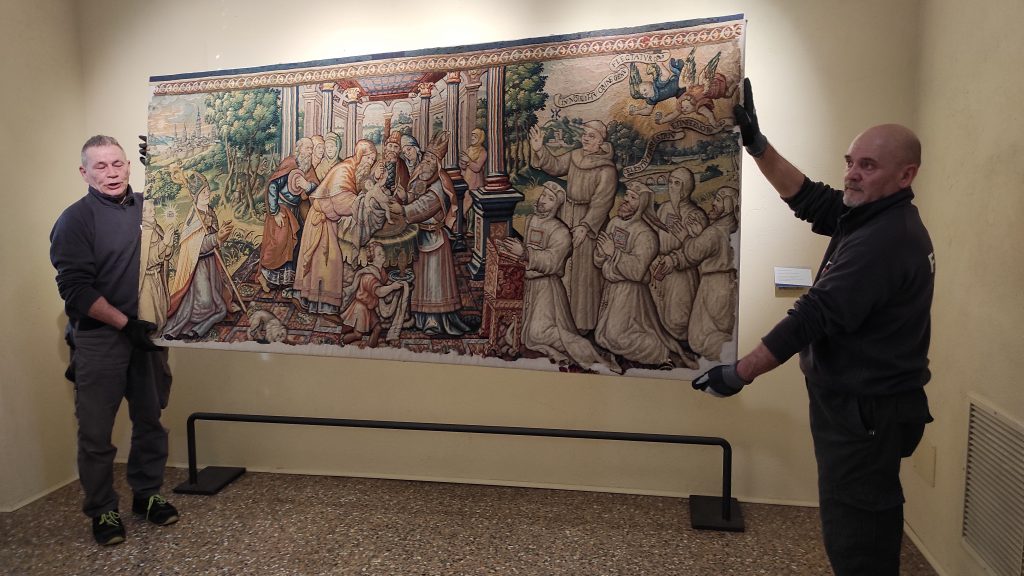 A far parte del percorso espositivo sarà il prezioso arazzo di manifattura fiamminga in lana e seta raffigurante “La Circoncisione” (1574?), di proprietà dell’Arciconfraternita degli Angeli (Oratorio del Gesù) e in comodato presso il Museo Civico con due cinquecentine in quarto, patrimonio della Biblioteca Civica: “Oratione dell’ill. sig. Annibal Guasco nella riforma del publico gouerno della città d’Alessandria, sua patria al consiglio generale d’essa città In Alessandria appresso Ercole Quinciano”, 1589; e “Ragionamento del sig. Annibal Guasco a d. Lauinia sua figliuola, della maniera del gouernarsi ella incorte; andando per dama alla serenissima infante d. Caterina, duchessa di Sauoia In Turino: presso l’herede del Beuilacqua”, 1586 (Stampata in Turino: per l’herede del Beuilacqua, 1586).
