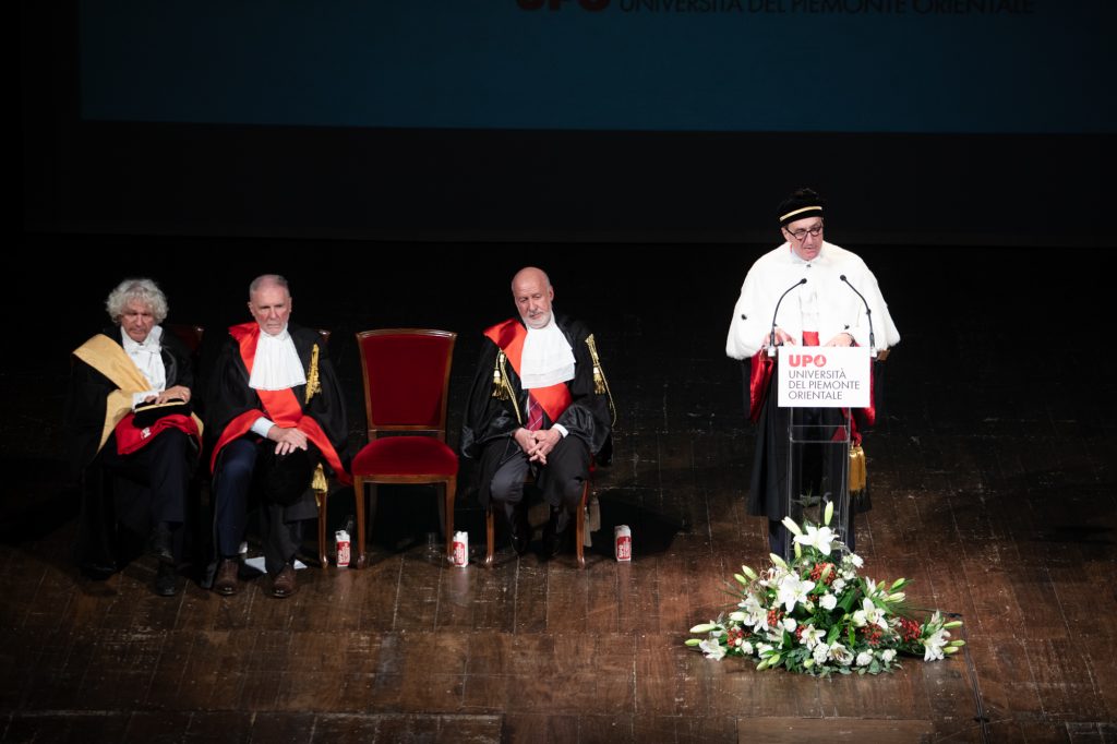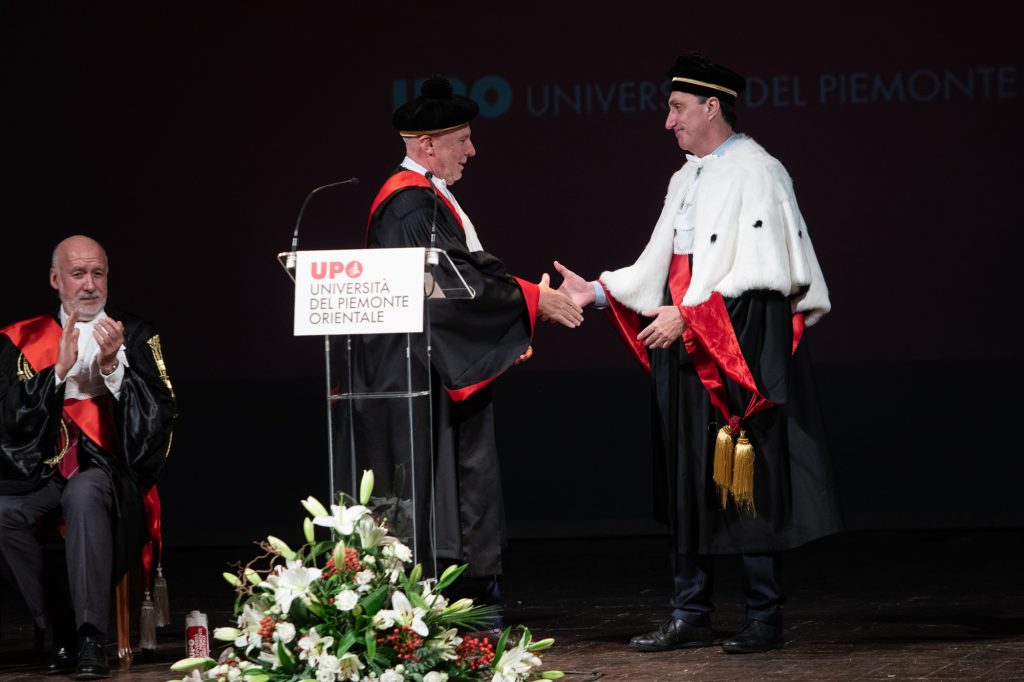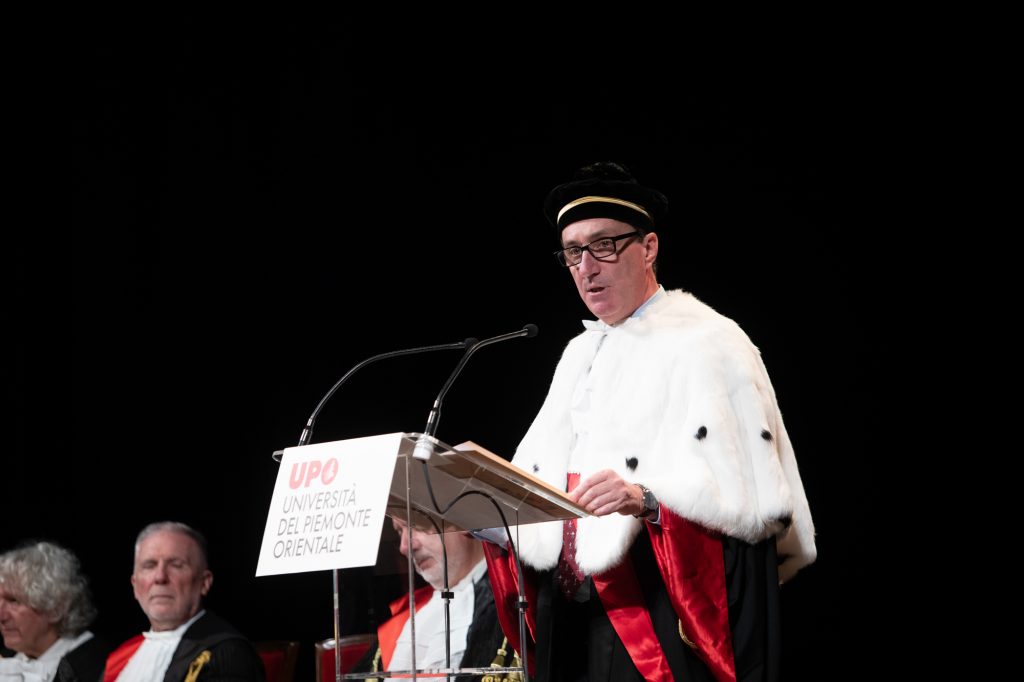 Auguro a tutti noi, alla nostra comunità, nello spazio e nel tempo, tutto il meglio possibile per il futuro, con un impegno personale che, lo garantisco, sarà massimo e lo sarà nella certezza che tutti insieme co-creeremo il futuro dell’Università del Piemonte Orientale, nel pieno riconoscimento e nel pieno rispetto della tradizione. Tradizione e innovazione non sono in contrasto: semplicemente colloquiano e collaborano.